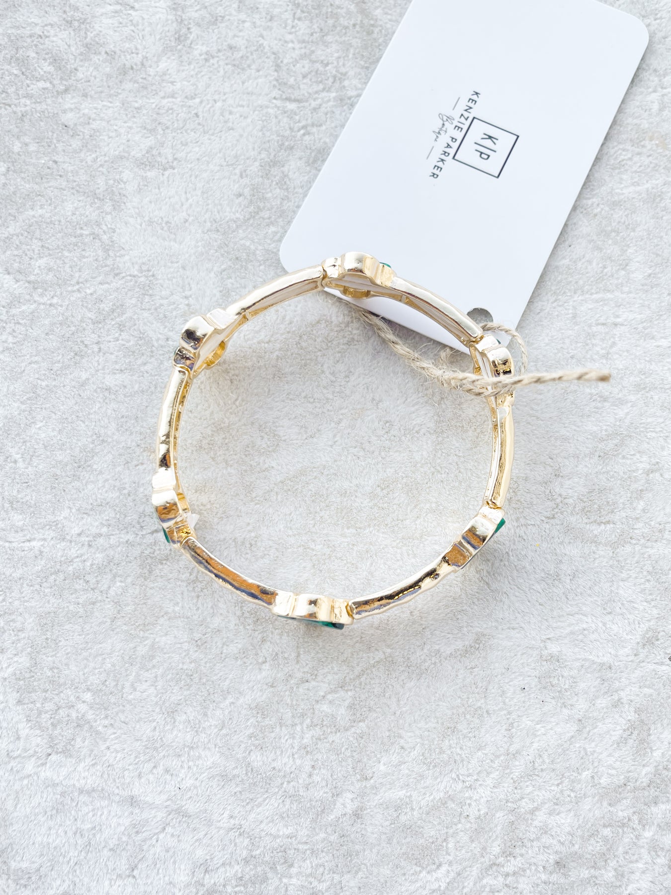 Add a playful touch to your fall look with the Cash Clover Station Bracelet. This stunning stretch gold bracelet features charming clover designs with pops of color, making it a trendy and stylish accessory for any outfit.