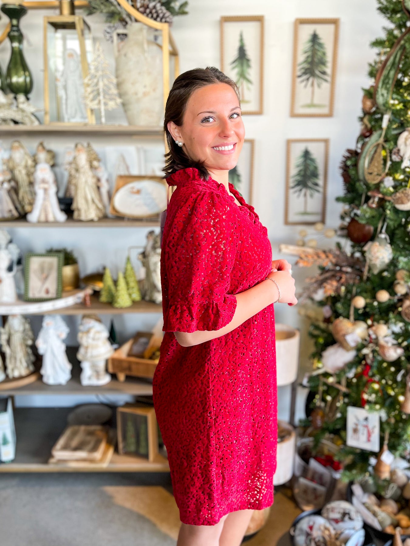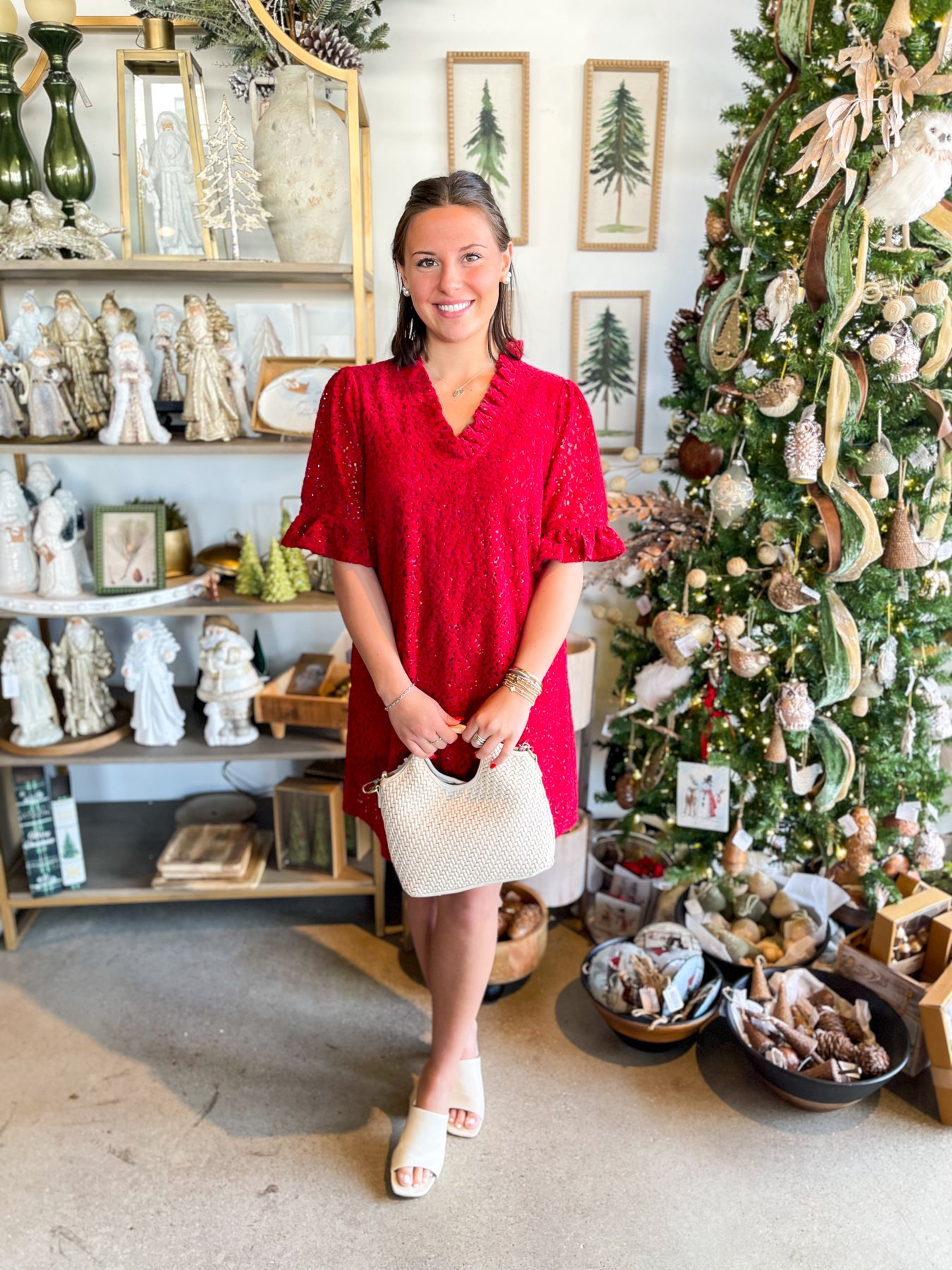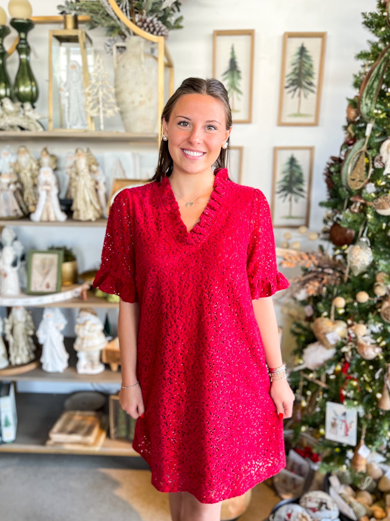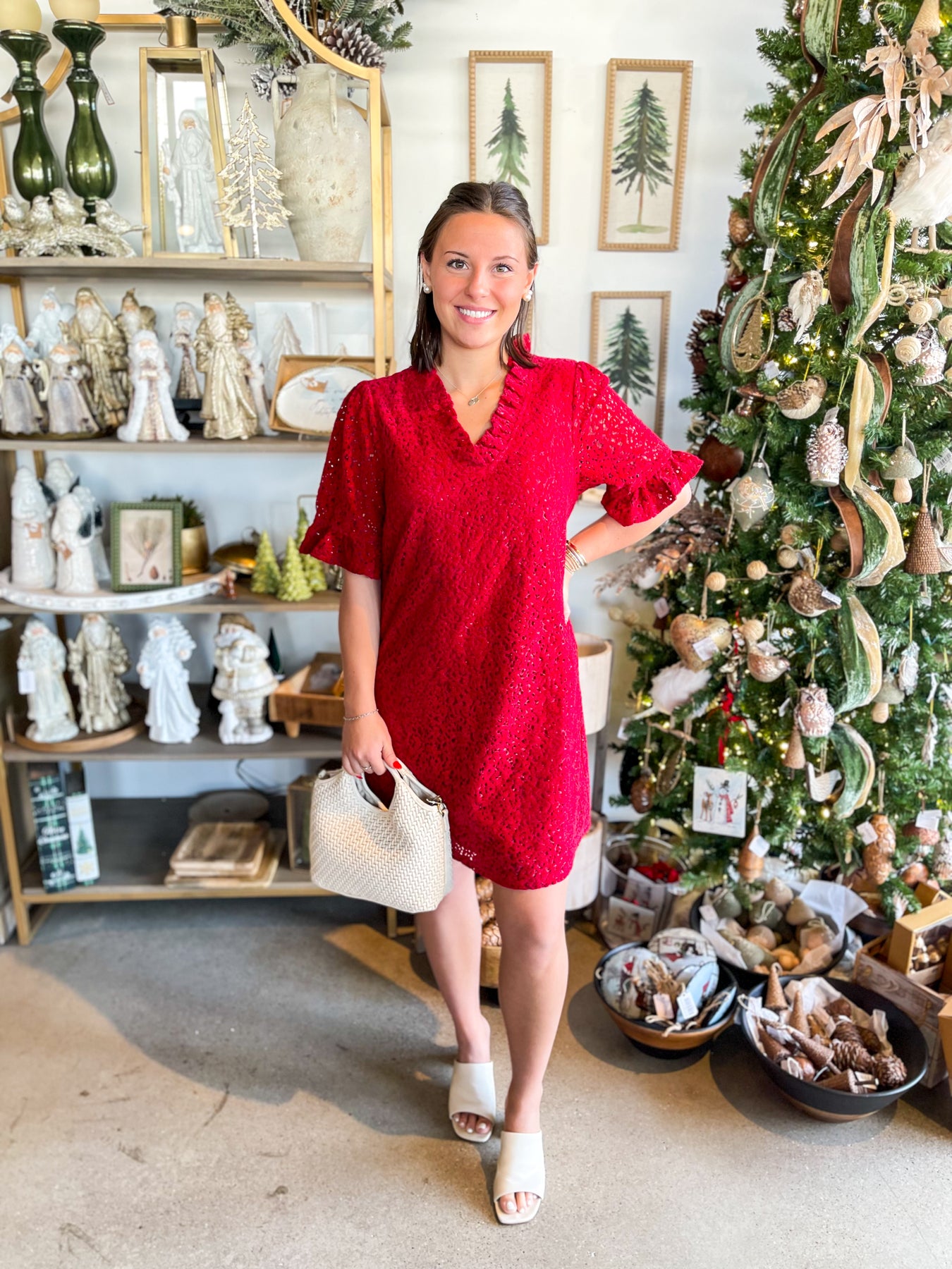 Make a statement this holiday season in our Voy Red Velvet Cut Dress—a show-stopping piece that combines luxe velvet with eye-catching floral cutouts. The flattering V-neckline and playful ruffle short sleeves add movement and charm, while the stunning red hue demands attention at every Christmas party. Trendy, elegant, and impossible to miss, this dress transforms any festive gathering into your moment to shine.