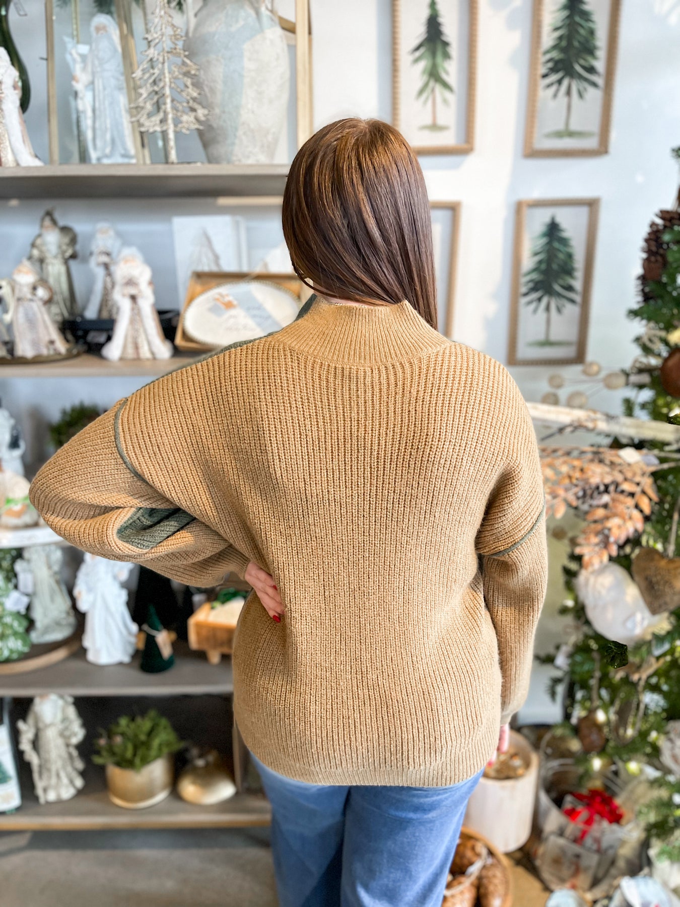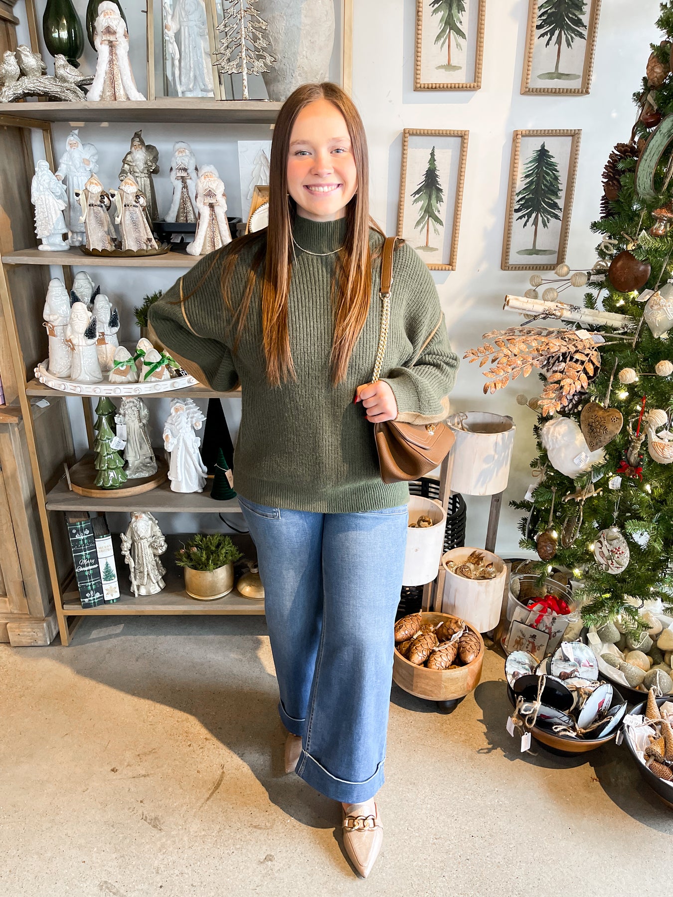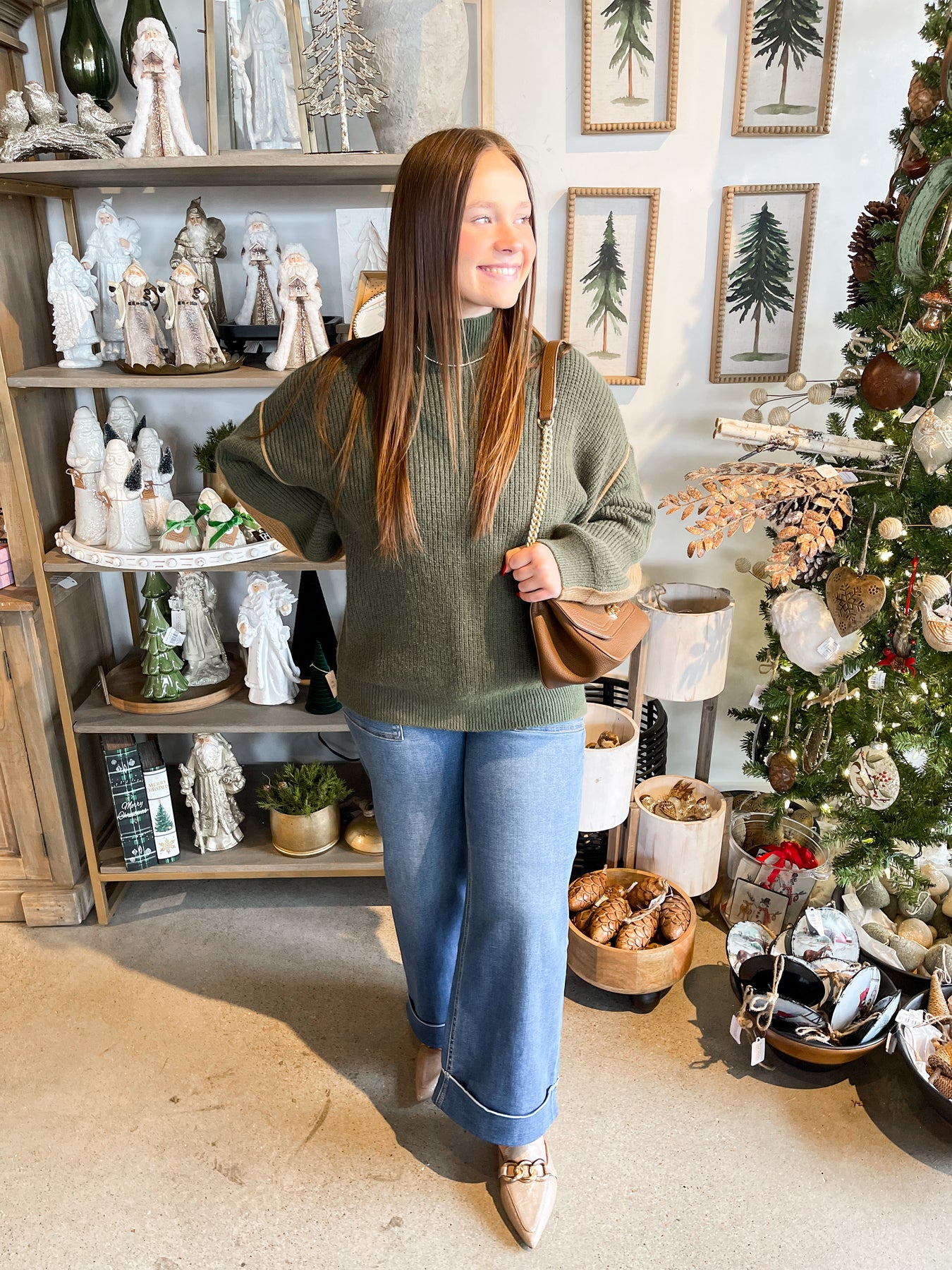 Stay cozy and cute in our Olive Mock Neck Sweater. The two-toned design and soft material add a playful touch to this must-have winter staple. Perfect for adding a touch of quirk to your wardrobe!