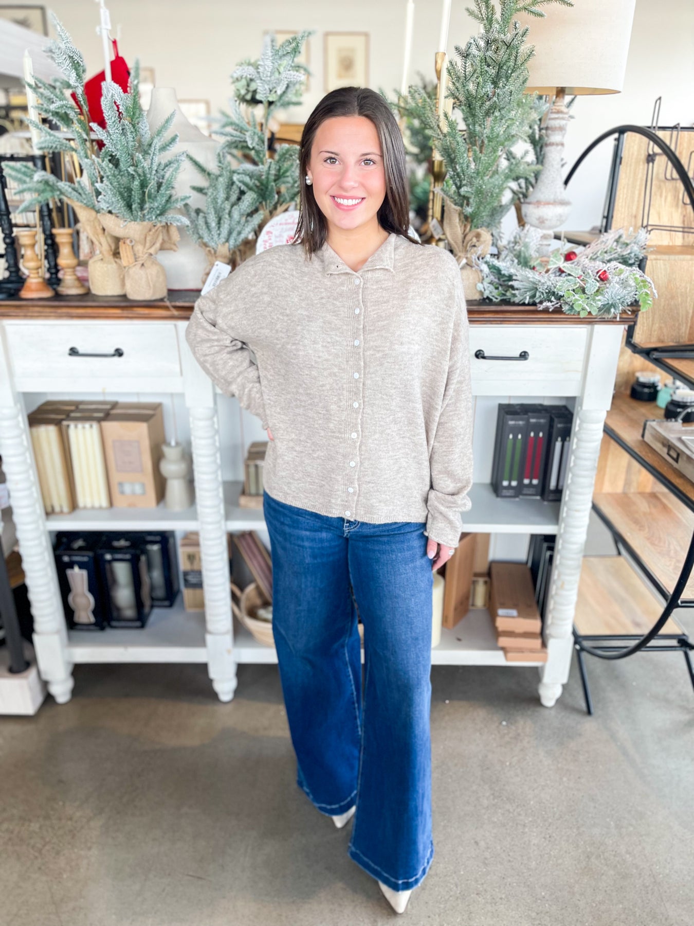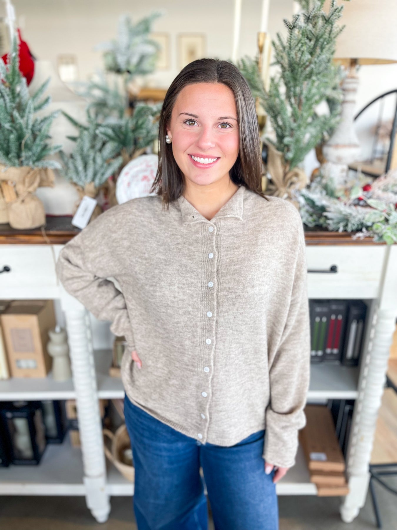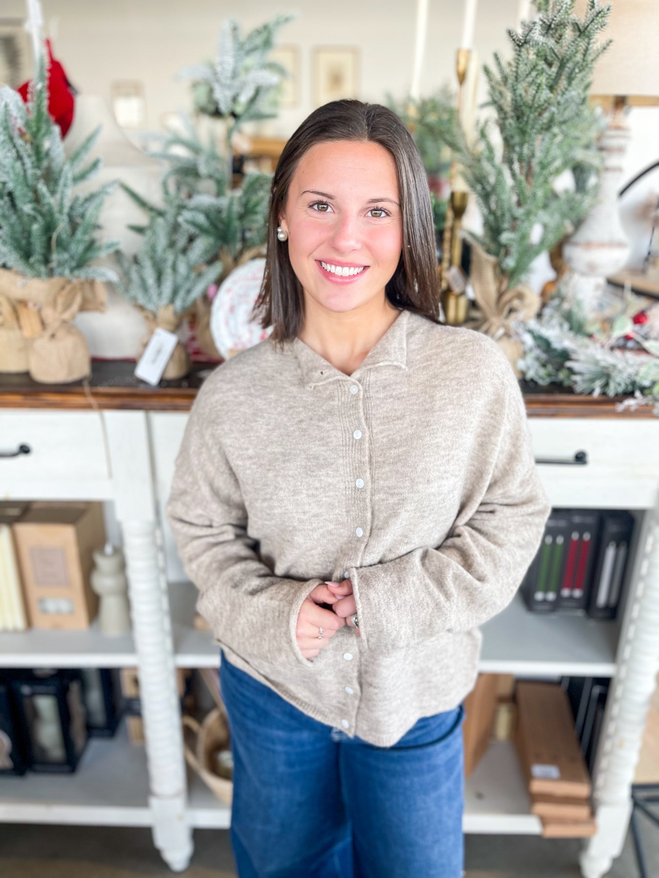 Meet your new wardrobe MVP! This stunning cardigan is the ultimate style chameleon—button it up for polished elegance or leave it open as a chic layering piece over your favorite tops. Crafted from super soft, lightweight fabric, it's as comfortable as it is trendy, making it perfect for both casual hangs and dressier occasions. The timeless oatmeal hue pairs with literally everything, giving you endless styling possibilities that feel effortlessly put-together. This is the piece you'll reach for again and again.