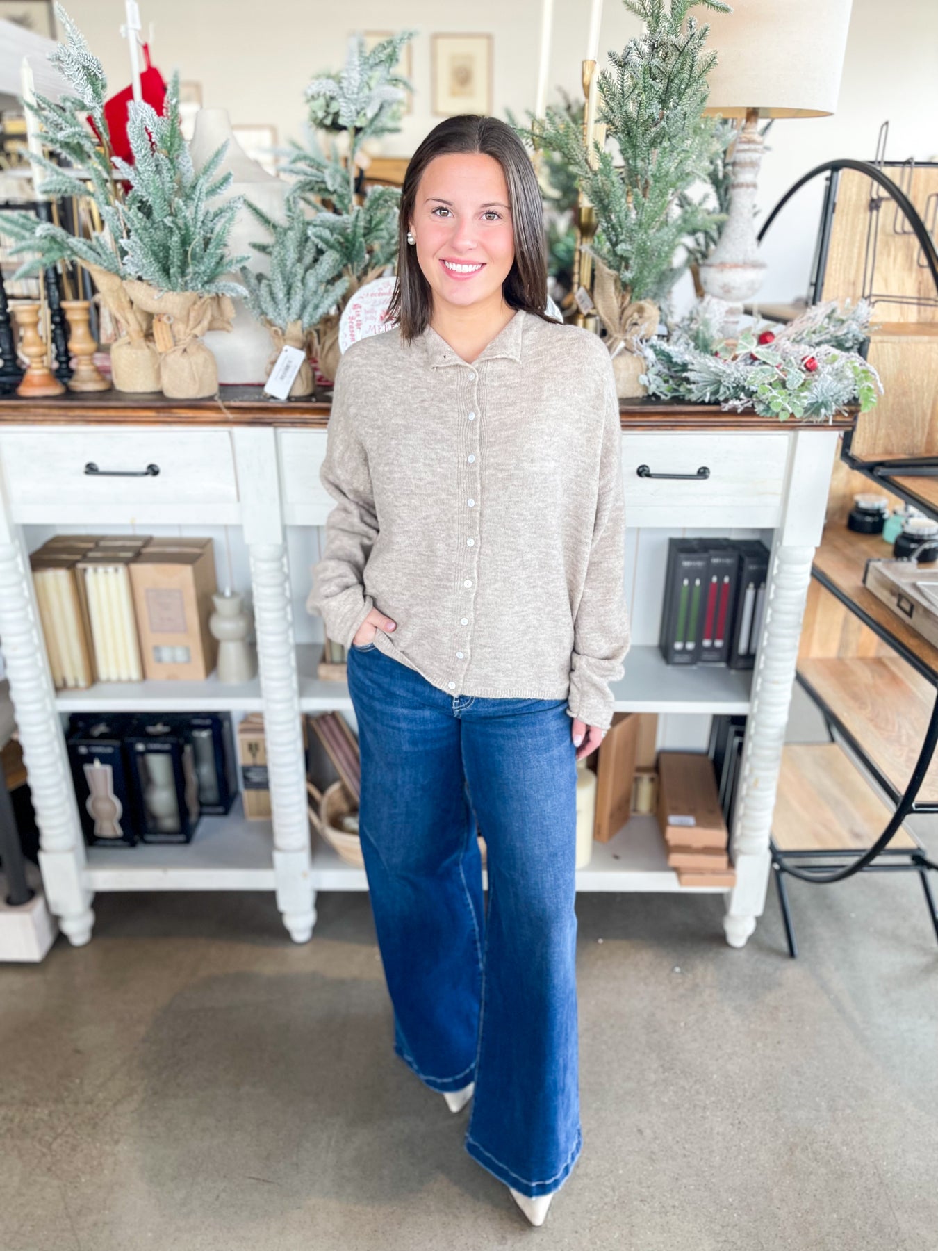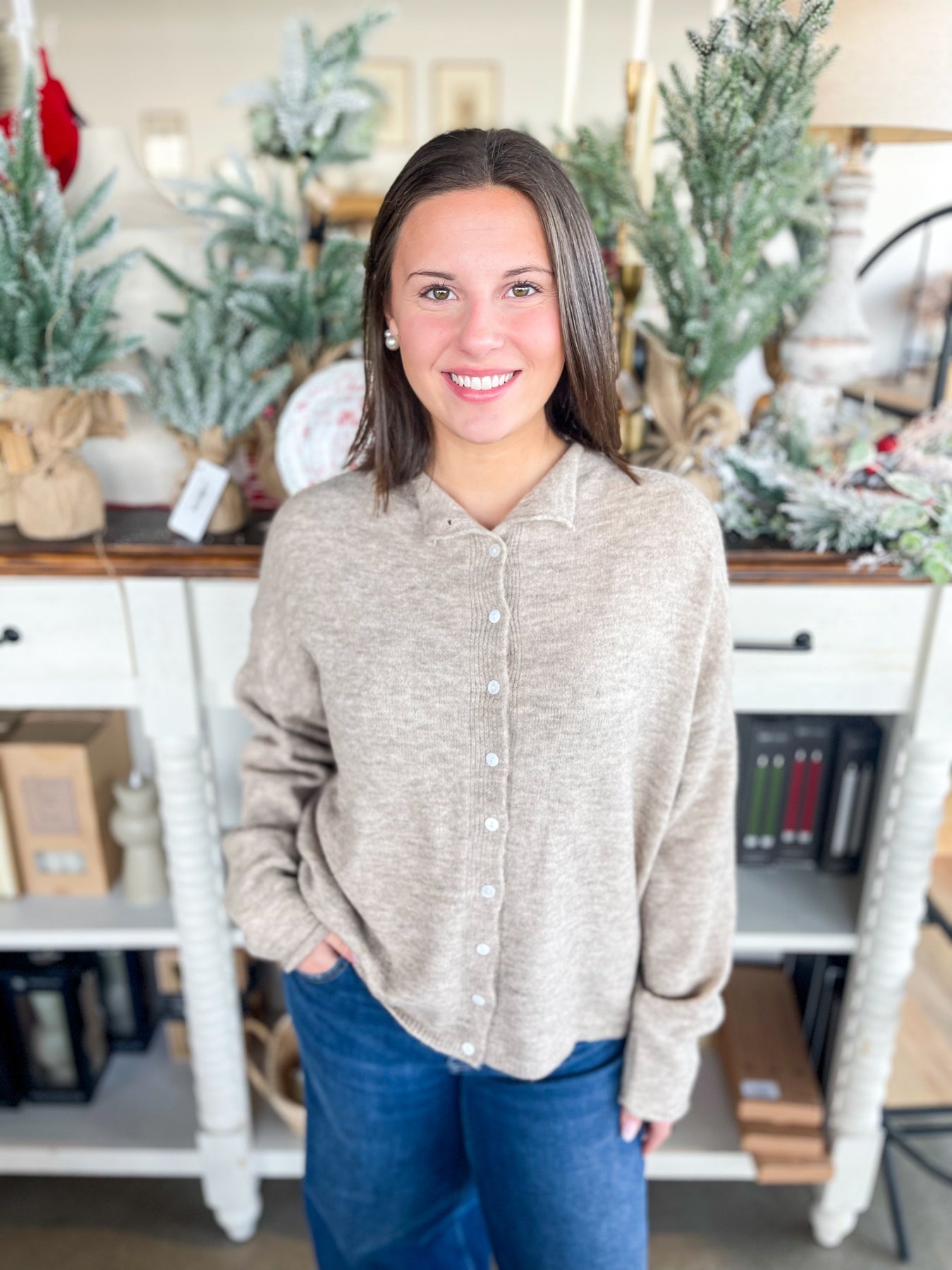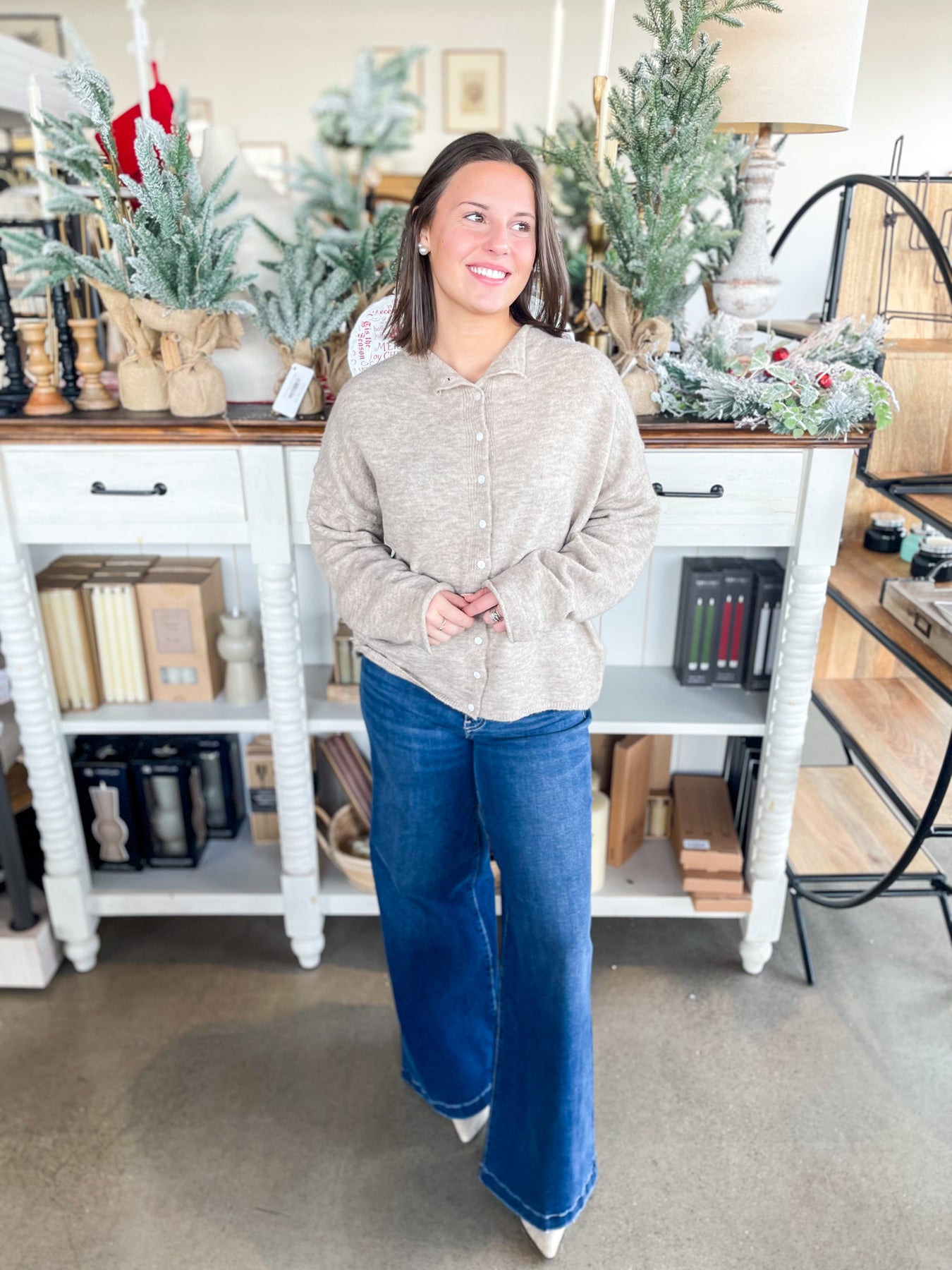 Meet your new wardrobe MVP! This stunning cardigan is the ultimate style chameleon—button it up for polished elegance or leave it open as a chic layering piece over your favorite tops. Crafted from super soft, lightweight fabric, it's as comfortable as it is trendy, making it perfect for both casual hangs and dressier occasions. The timeless oatmeal hue pairs with literally everything, giving you endless styling possibilities that feel effortlessly put-together. This is the piece you'll reach for again and again.