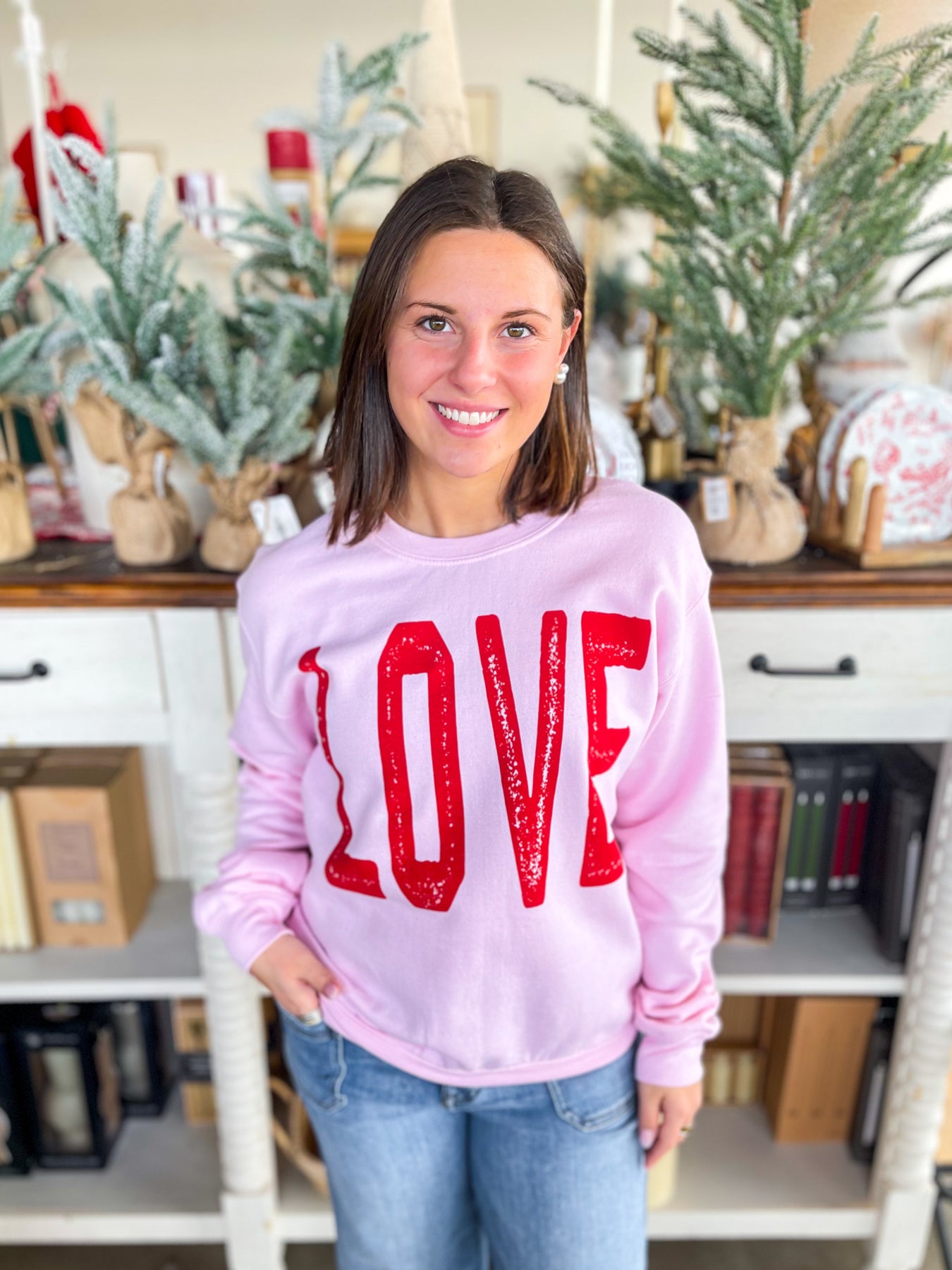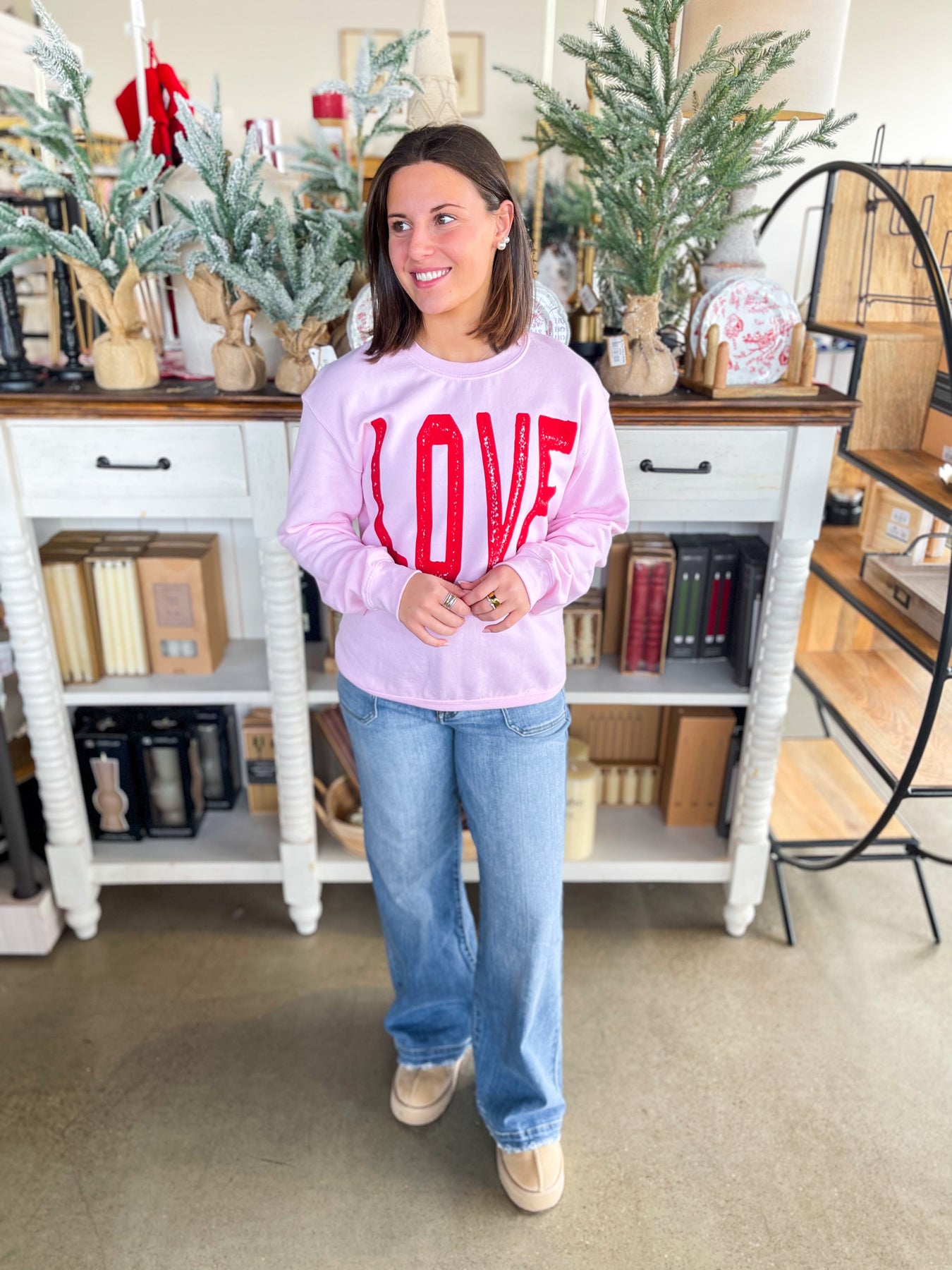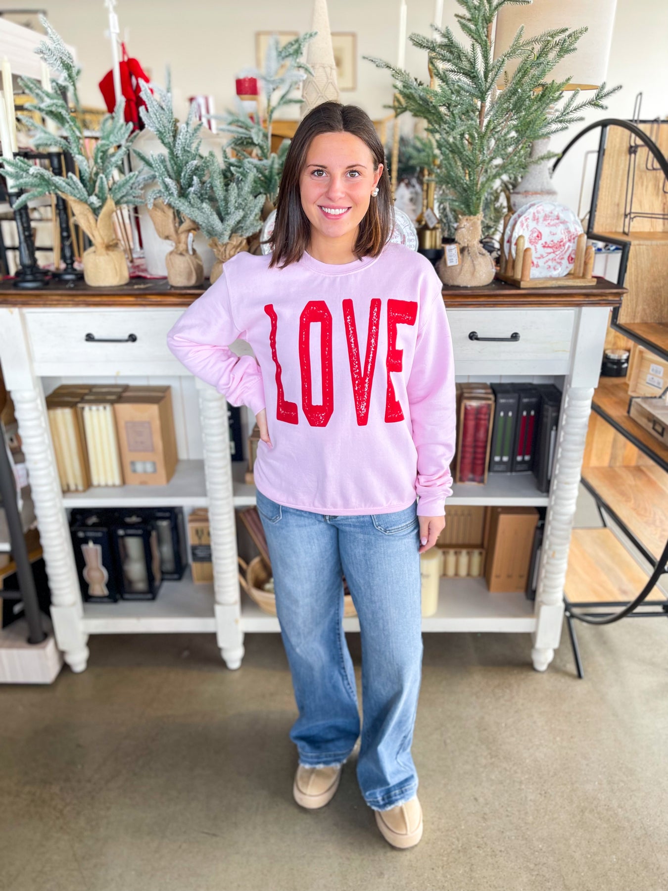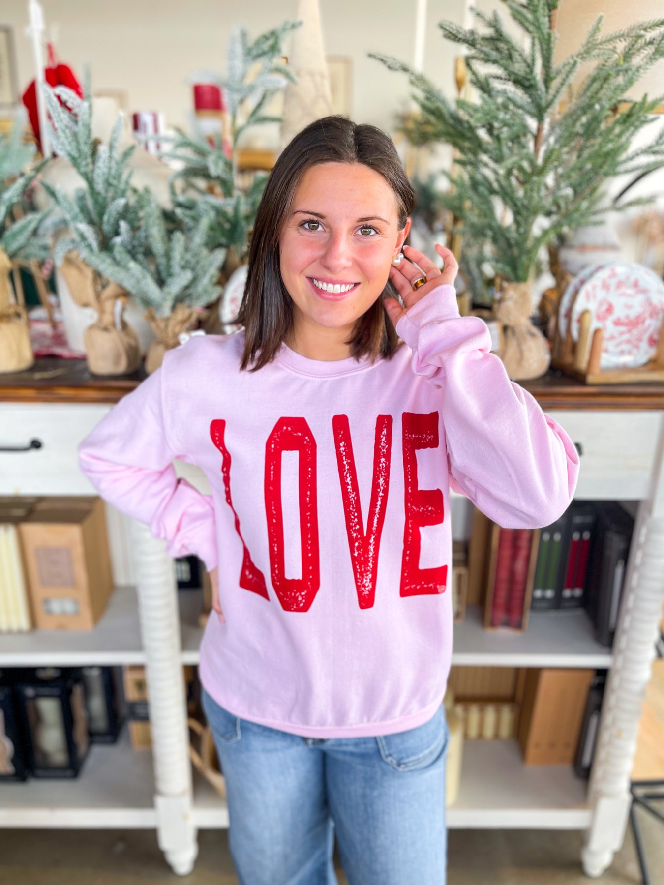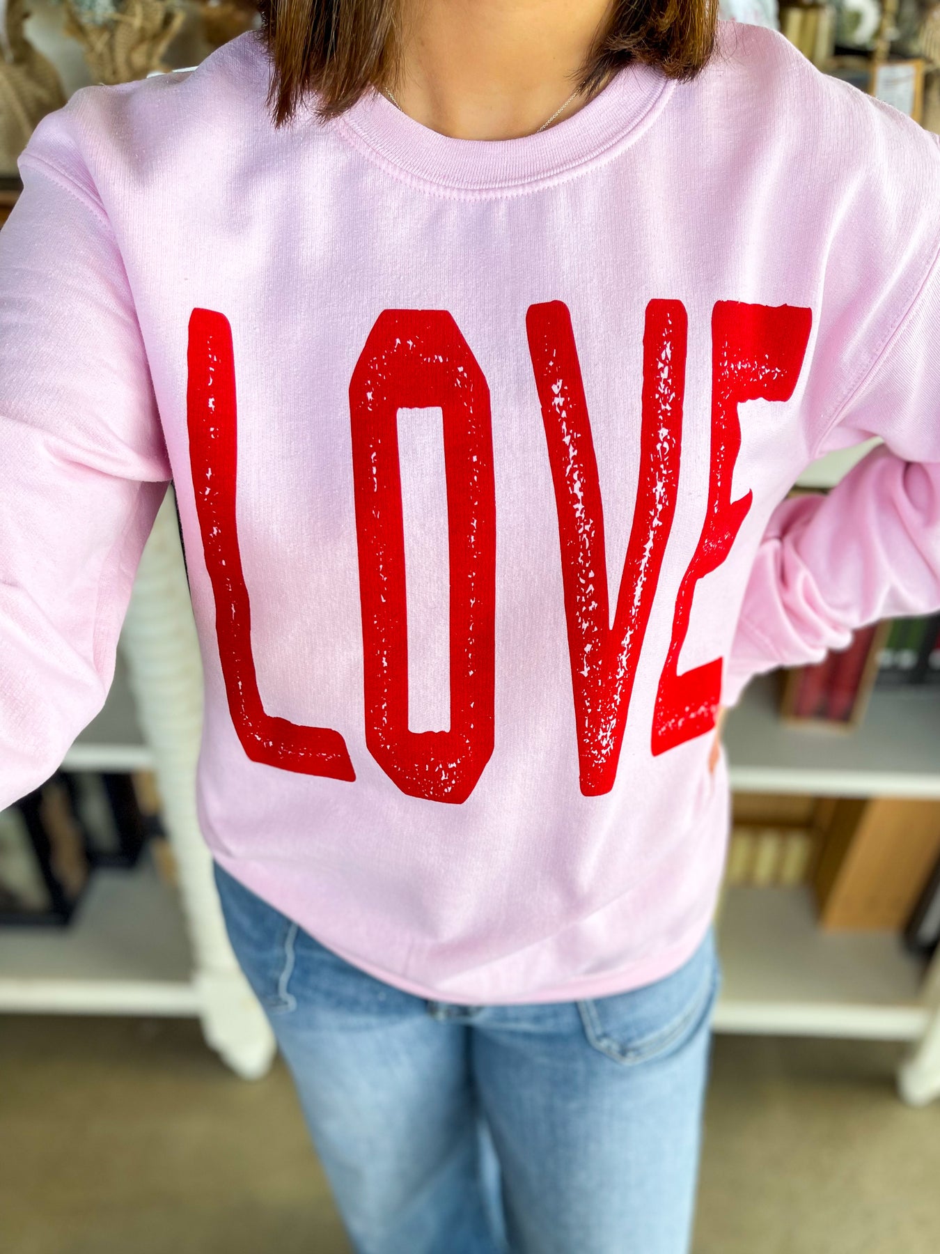 Fall head over heels for this adorable LOVE Valentines Sweatshirt! Soft pink perfection meets bold red lettering spelling out "LOVE" for maximum Valentine's Day charm. The cozy fit is absolutely perfect—not too tight, not too loose—making it your new favorite piece to live in. Dress it down with jeans for casual vibes or style it up for a night out; this sweetheart transitions seamlessly from laid-back to lovely. Pure cuddle-worthy cuteness that celebrates love in the most stylish way!