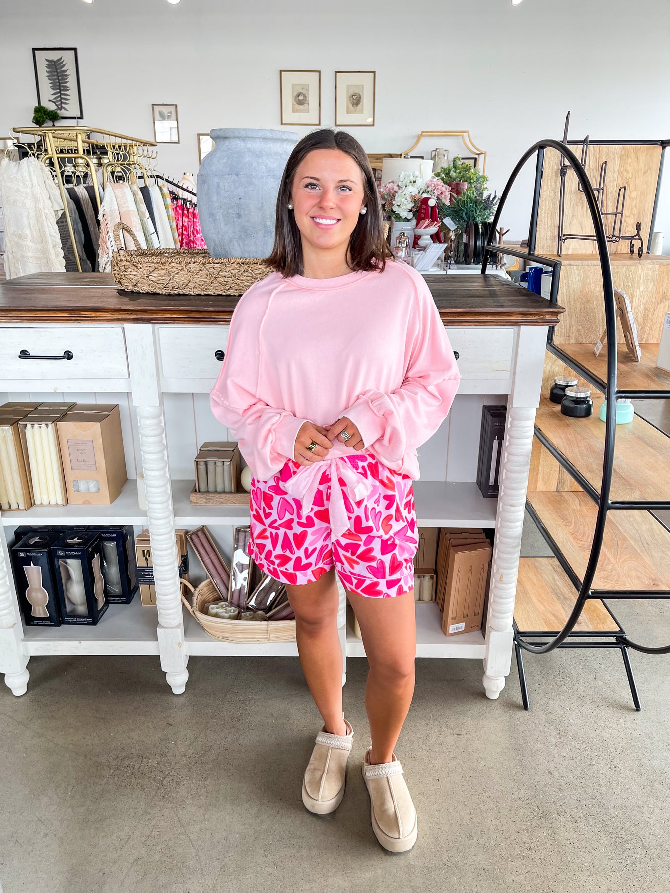 Slip into comfort with these adorable Valentine's Pajama Shorts! Featuring a charming heart print and trendy silhouette, they're perfect for cozy nights in. The elastic waist with silk tie ensures a flattering fit, while functional pockets add practical style. Soft, playful, and oh-so-cute—your new favorite sleepwear essential.