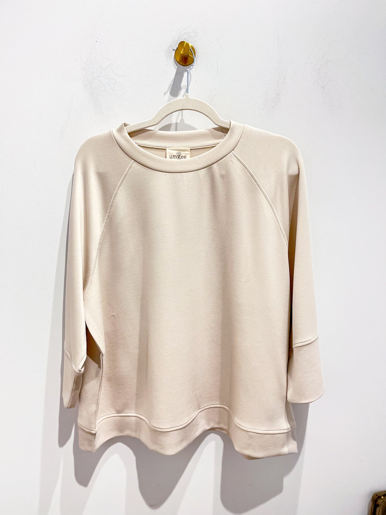 Wrap yourself in comfort with the Umgee Ecru Garusha Top. Crafted from buttery-soft scuba material, this cozy essential feels like a warm hug. The classic crew neckline and long sleeves provide timeless appeal, while a chic side slit adds modern flair and easy movement. Perfect for layering or wearing solo, this versatile piece transitions seamlessly from casual coffee runs to relaxed weekend hangouts. Your new favorite go-to top awaits!