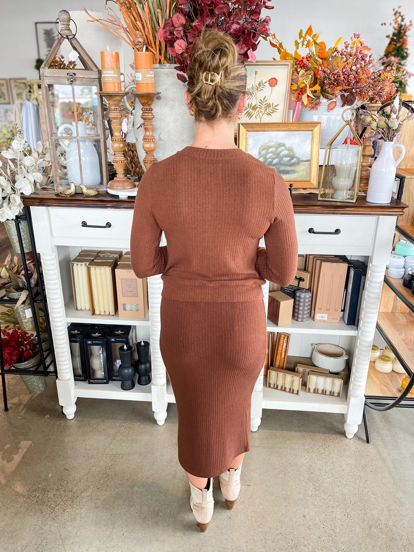 This Misty Skirt Set in a Trendy Brown hue brings softness and stretch together for effortless fall style. The super soft fabric feels like a dream, while the long-sleeve button-down top adds a touch of chic ease. With an elastic band on the skirt, comfort and fit move with you all day long. Perfect for layering or wearing solo, this neutral set is your new playful go-to for crisp autumn days.