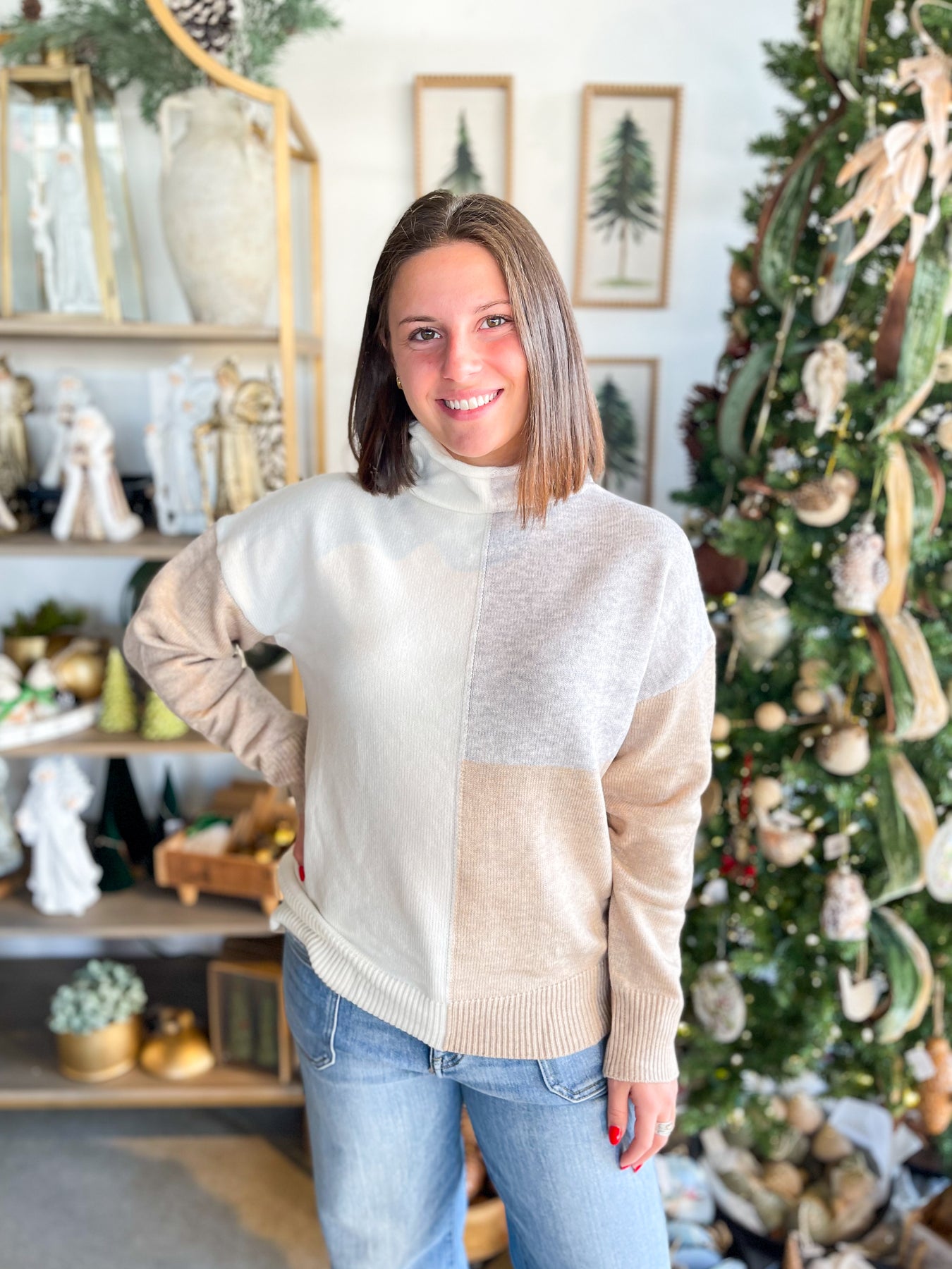 Upgrade your sweater game with our Colorblock Mockneck Baili Sweater! With stunning pops of grey, ivory, and tan, this super soft and lightweight knit sweater will keep you cozy and effortlessly stylish. Plus, the turtleneck style adds a touch of sophistication to any outfit. Time to turn heads and stay comfy!