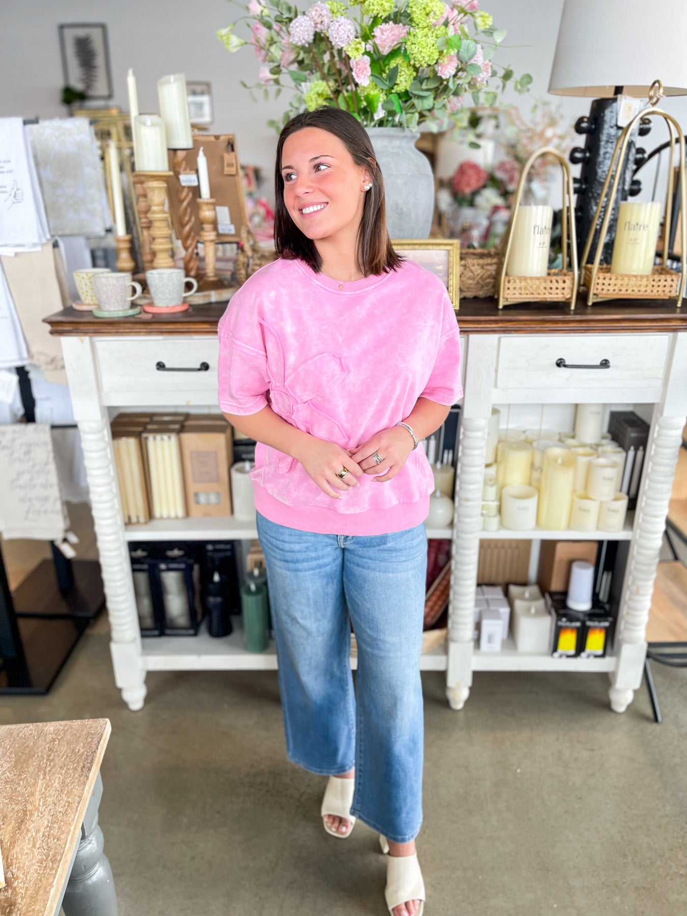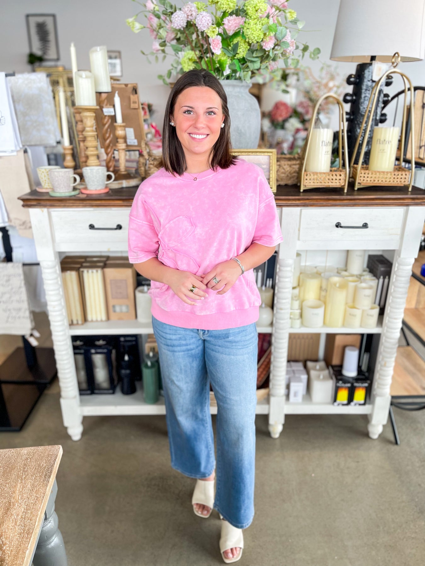 This adorable acid wash top is bursting with bright, cheerful vibes! Soft to the touch with a charming floral detail, it's the perfect casual piece for laid-back days. The lightweight fabric and short sleeves keep you comfortable, while the classic crew neckline gives it timeless appeal. Whether you're running errands or hanging with friends, this cute and colorful top brings effortless style to your everyday rotation. Cozy, cute, and totally wearable!