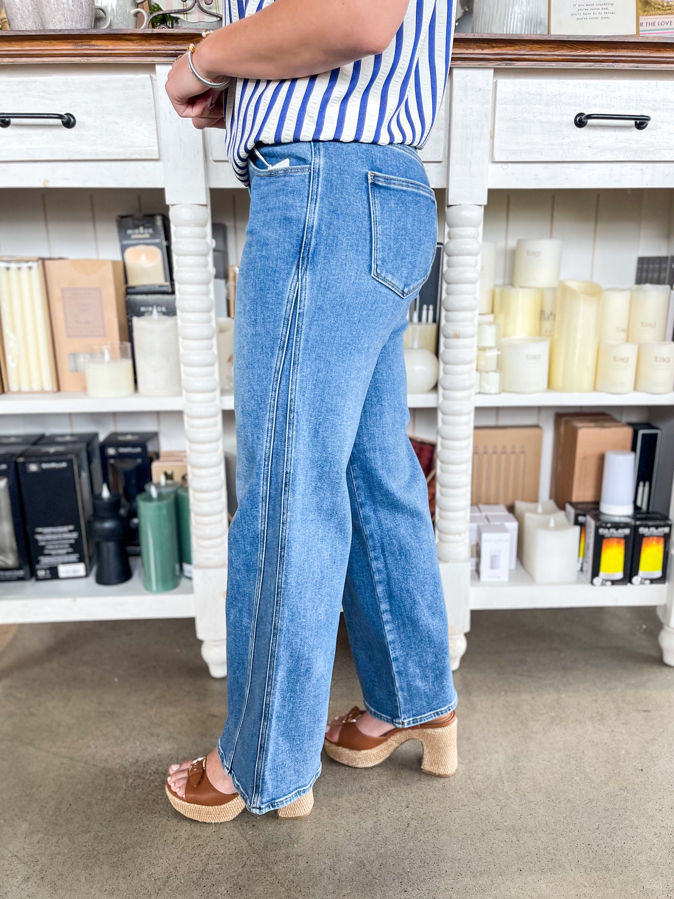 Meet your new denim obsession—the JBD Medium Wash Seamed Wide Leg Jean is the must-have piece that effortlessly elevates any outfit. Featuring a flattering faded medium wash and full-length silhouette, these trendy jeans deliver comfort without compromising style. Classic button closure, functional belt loops, and practical pockets keep things practical, while the fun seamed detail on the side adds that extra touch of personality. Your everyday wardrobe just got a serious upgrade.