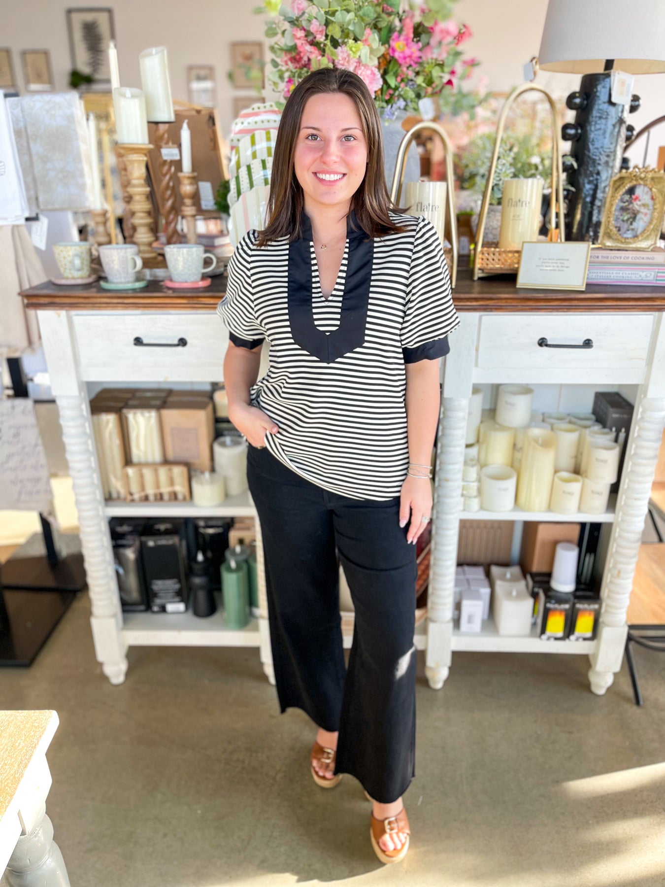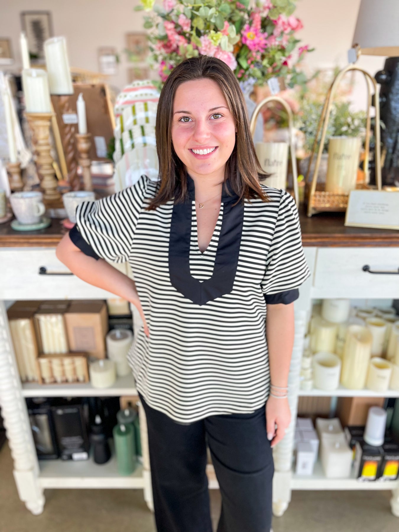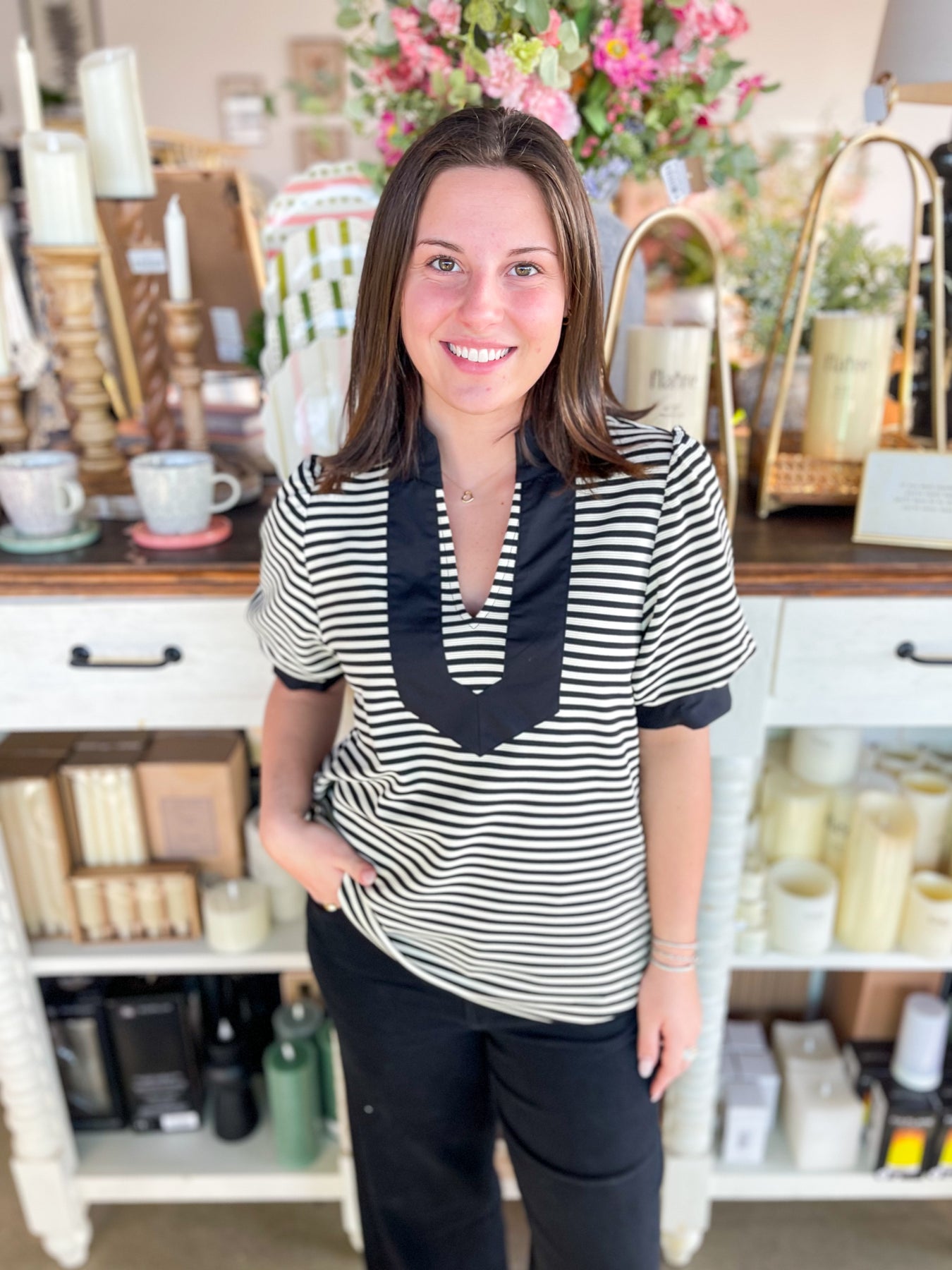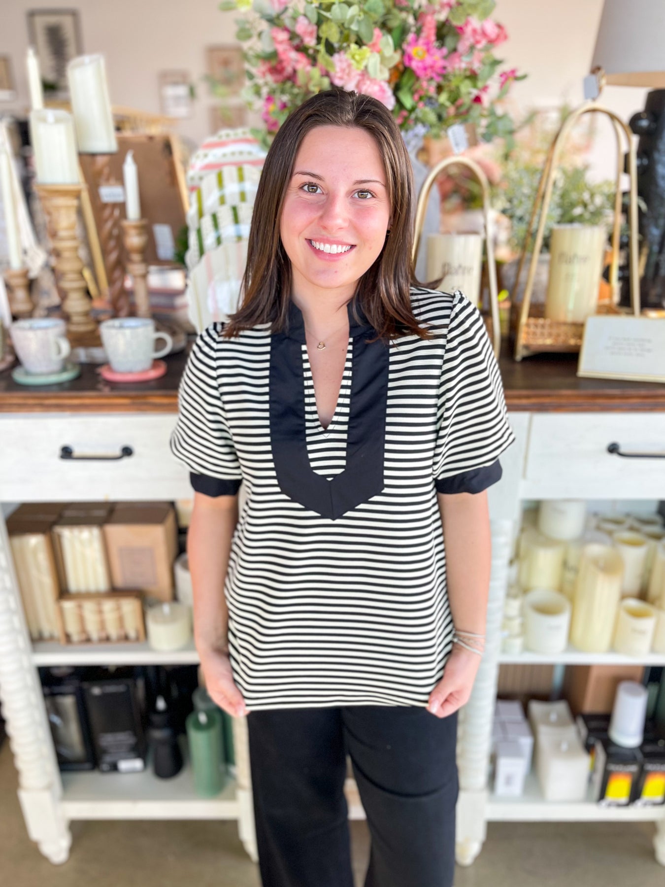 Stripes never go out of style, and this gorgeous Black and white striped top proves it! The crisp, classic pattern pairs beautifully with a flattering v-neckline and playful puff sleeves that add just the right amount of personality. Whether you're jet-setting on vacation or enjoying everyday adventures, this stunning piece brings effortless charm to any outfit. Fresh, fun, and endlessly versatile—your wardrobe just got an instant upgrade!