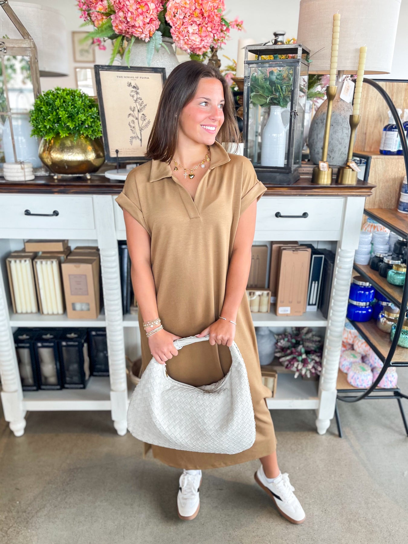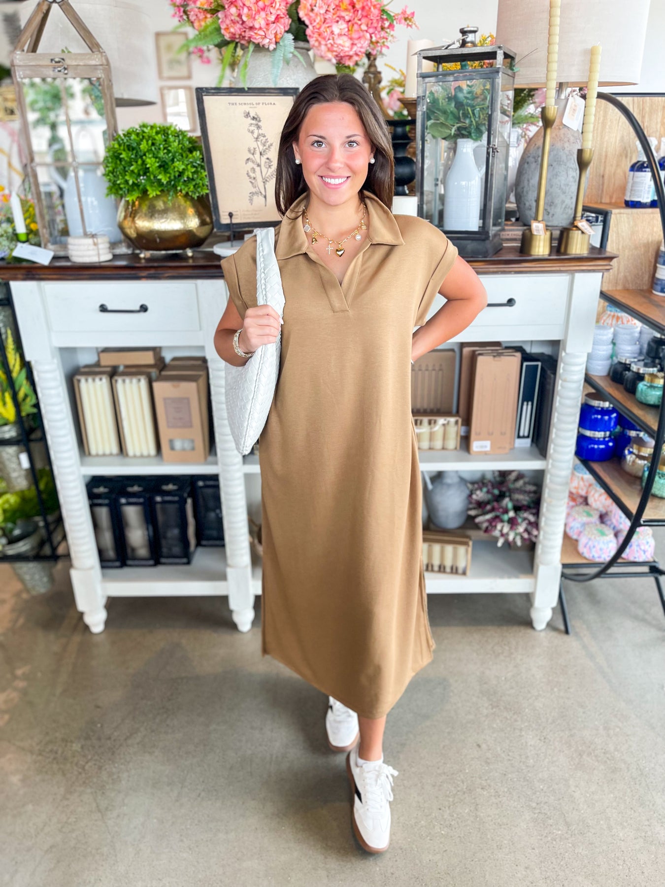 Stay cool and cute this summer in the Jodifl Taupe Long Cassie Dress. Super soft with charming collar detail and cuffed cap sleeves, it’s casual yet effortlessly stylish. Perfect for sunny days when you want comfort with a playful touch!