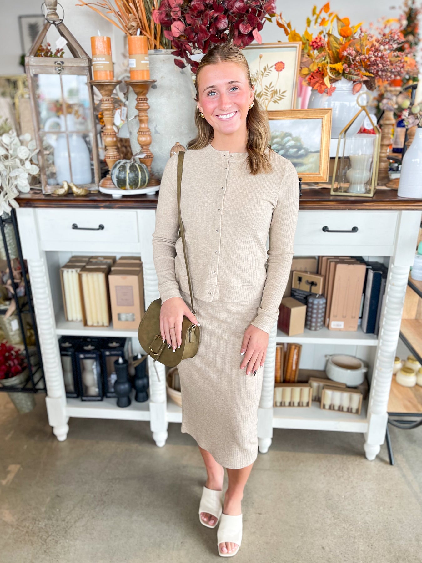 This Misty Skirt Set in a cozy tan hue brings softness and stretch together for effortless fall style. The super soft fabric feels like a dream, while the long-sleeve button-down top adds a touch of chic ease. With an elastic band on the skirt, comfort and fit move with you all day long. Perfect for layering or wearing solo, this neutral set is your new playful go-to for crisp autumn days.