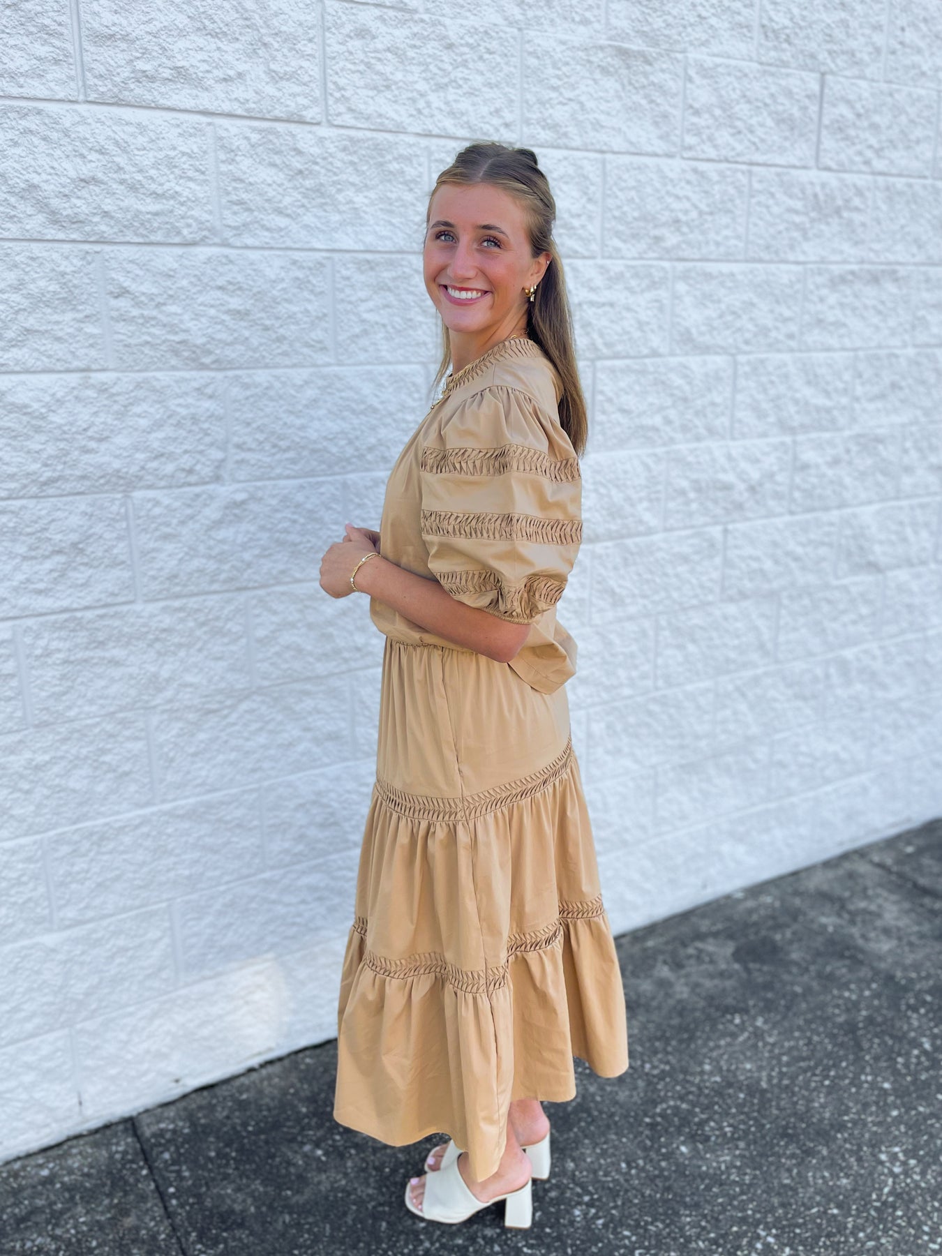 Elevate your wardrobe with the Pintuck Detail Tan Skirt/Top Set, designed with playful puff sleeves and textured detail throughout. The scoop neck top features a back button closure for a charming finish, while the flowy midi skirt moves gracefully with every step. Wear them together for a coordinated look or mix and match for endless style possibilities.
