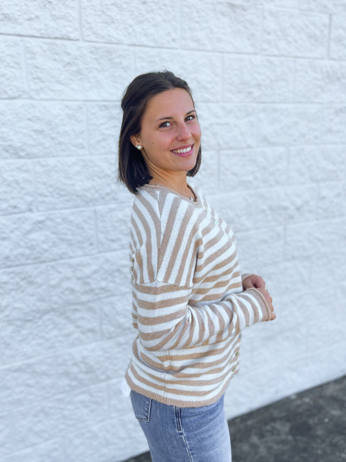 Wrap up in cozy charm with the Taupe Gayla Cardigan! This stunning tan and cream striped cardigan features small buttons, a lightweight and super soft feel, plus a playful loose fit. With crew-neck style and long sleeves, it's the perfect trendy layer for fall fun.