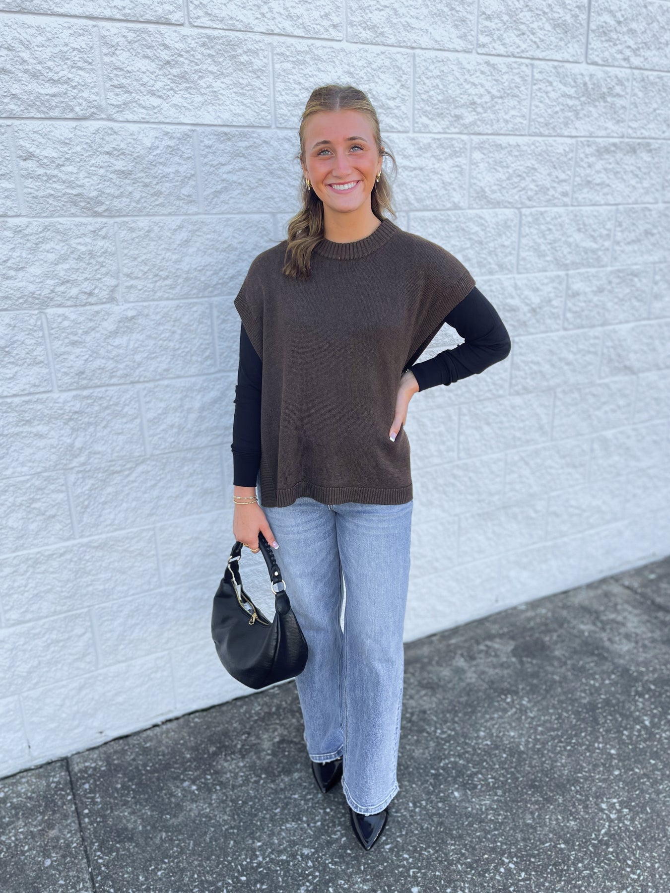 Add a playful touch to your fall wardrobe with the Tye Sweater Vest. This stunning vest comes in three colors and features adjustable ties on the outside for a flattering, customizable fit. Perfect for layering over your favorite tops, it’s an easy way to stay cozy and stylish all season long.