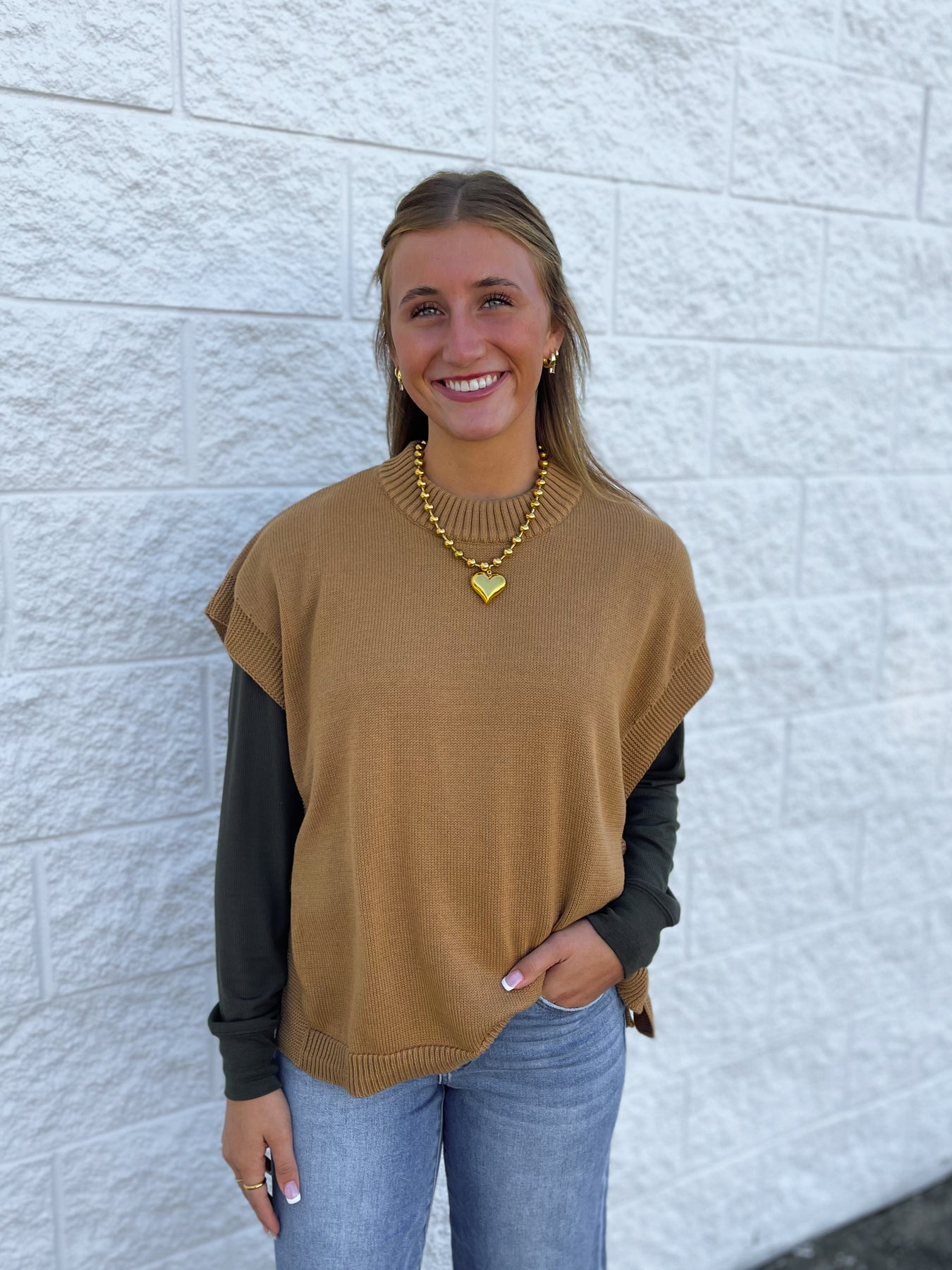 Add a playful touch to your fall wardrobe with the Tye Sweater Vest. This stunning vest comes in three colors and features adjustable ties on the outside for a flattering, customizable fit. Perfect for layering over your favorite tops, it’s an easy way to stay cozy and stylish all season long.