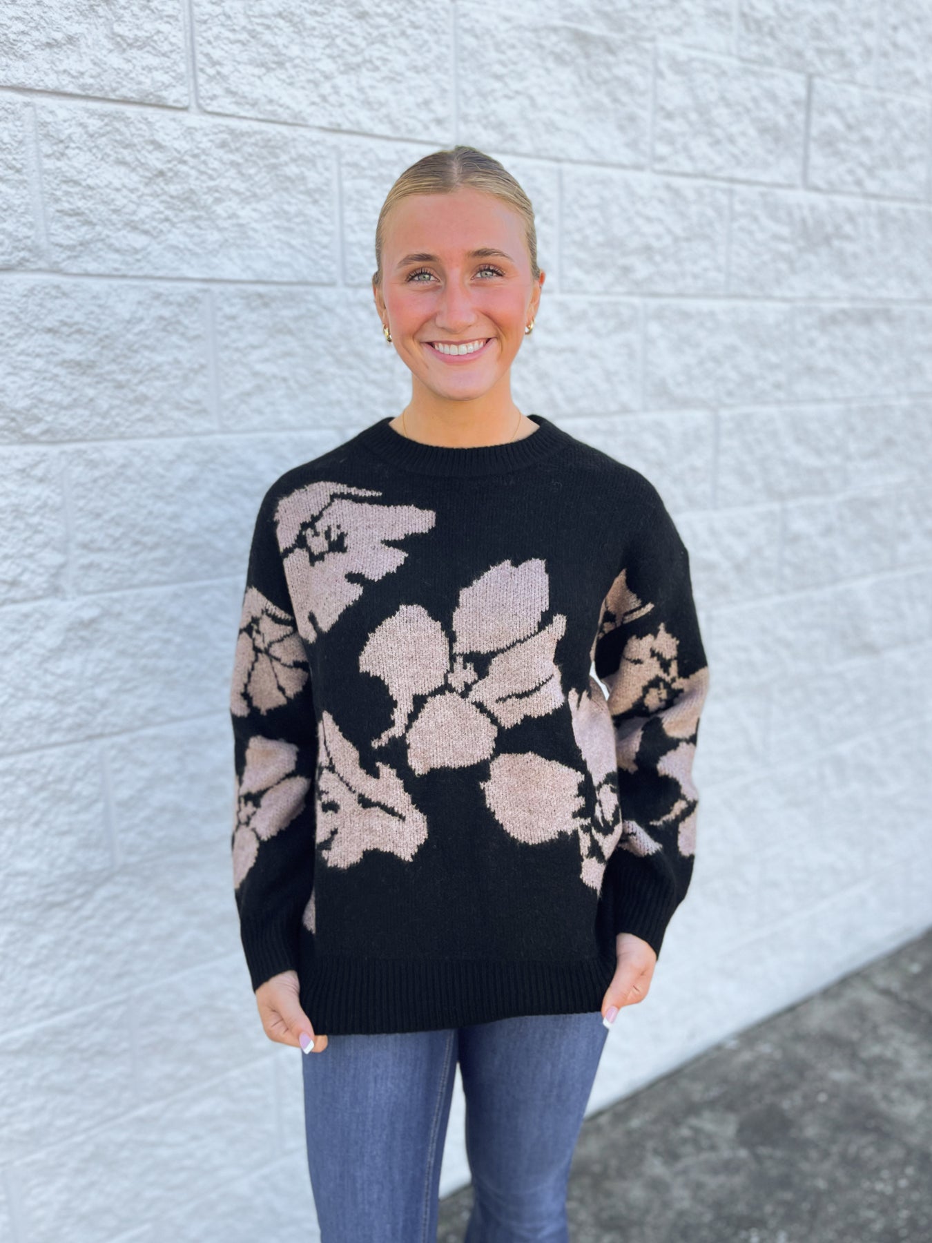 Fall in love with the Umgee Black Anderson Sweater! Its stunning black knit is adorned with taupe flowers, adding a playful pop of luxe to your look. Slightly cropped with a cozy crew neck, this sweater is perfect for layering and bringing a fresh vibe to your fall wardrobe.
