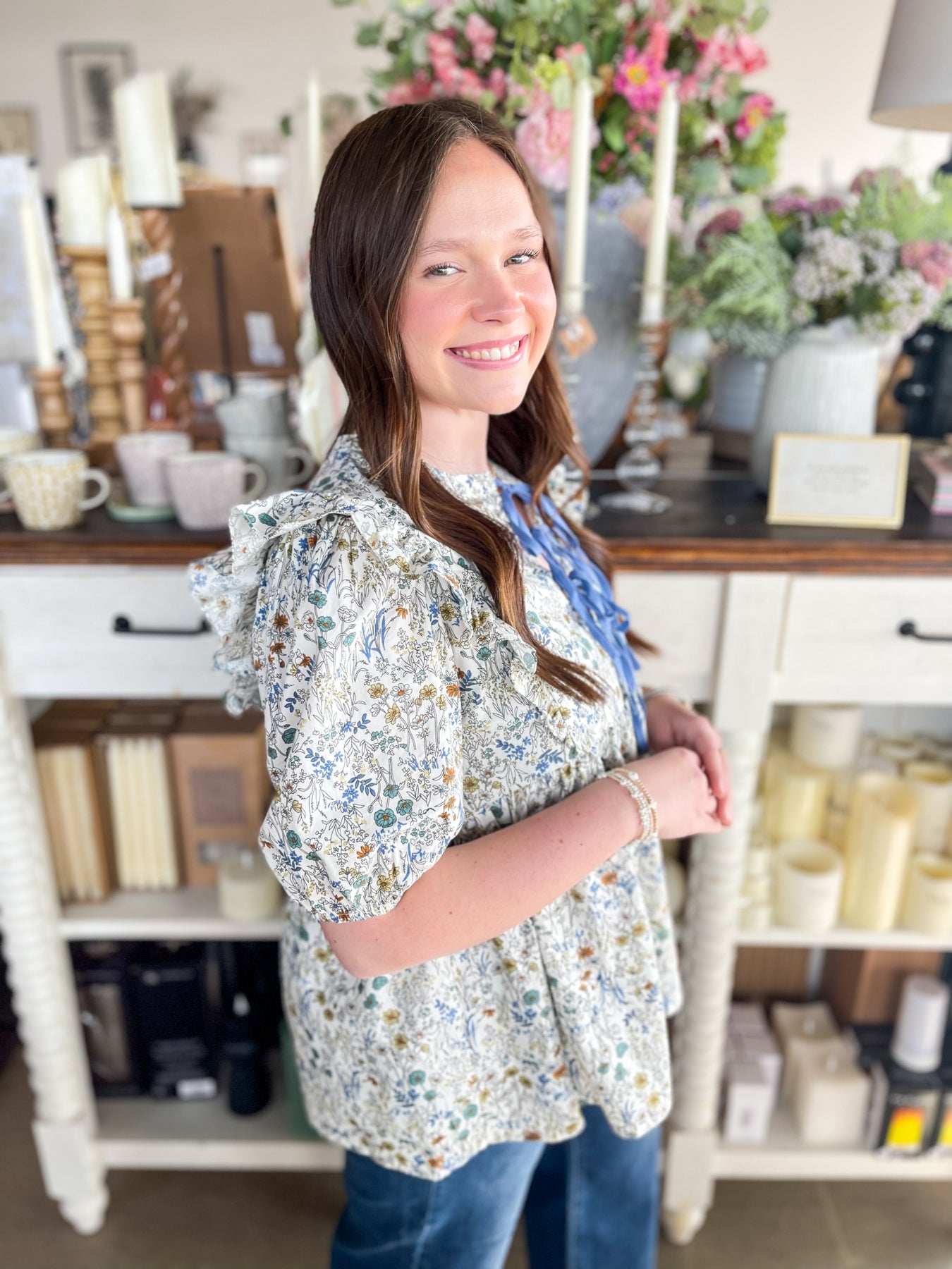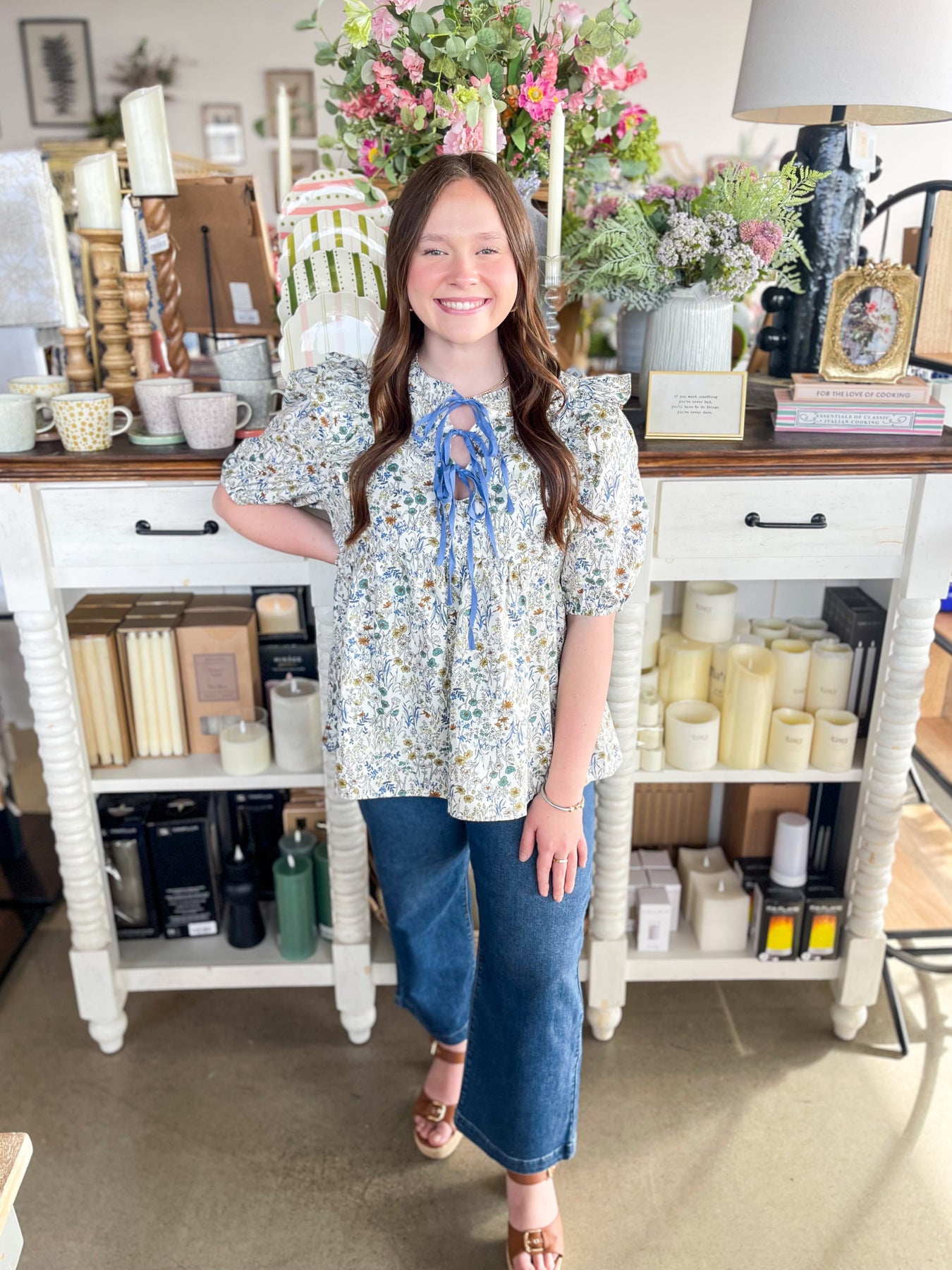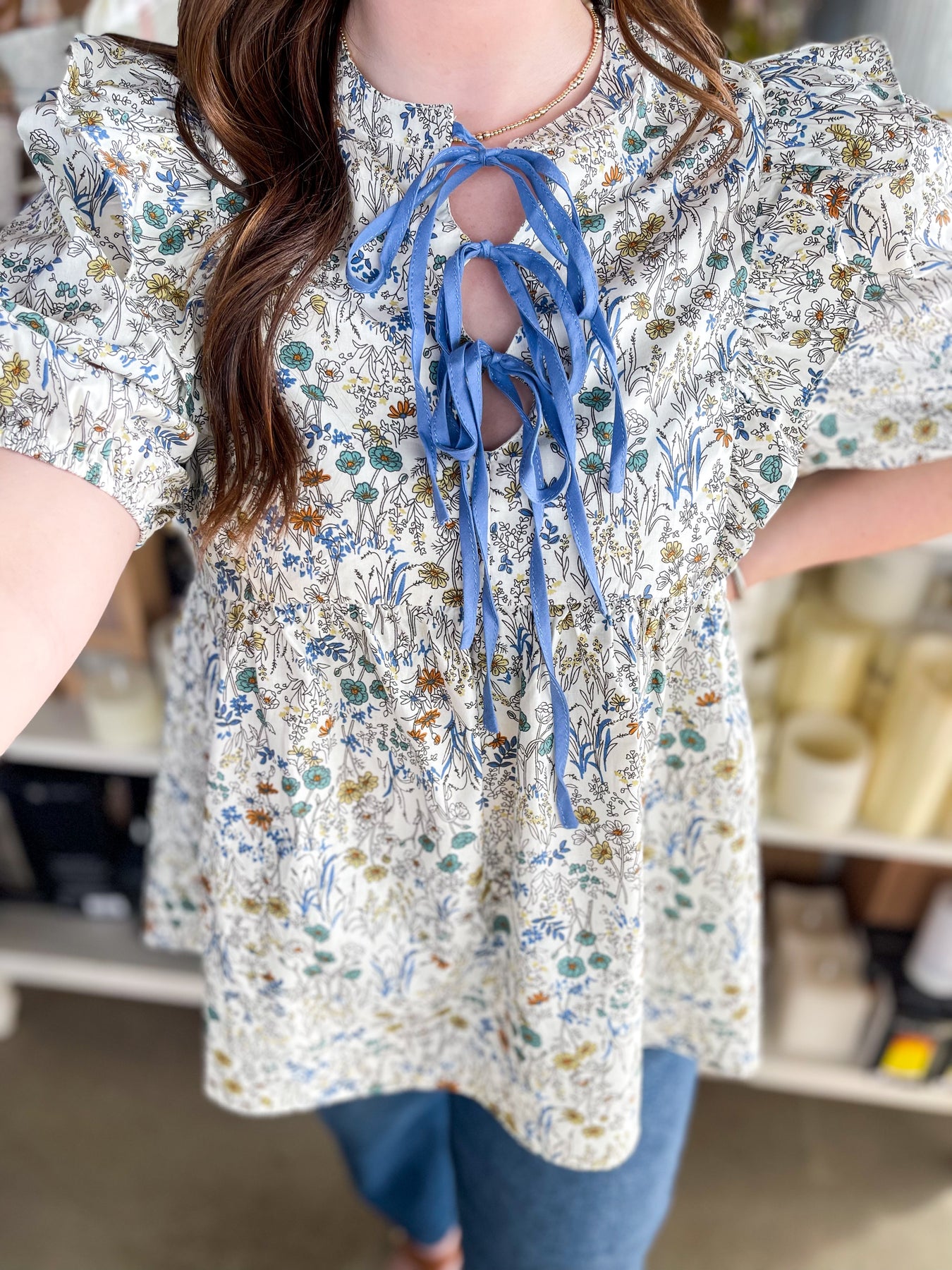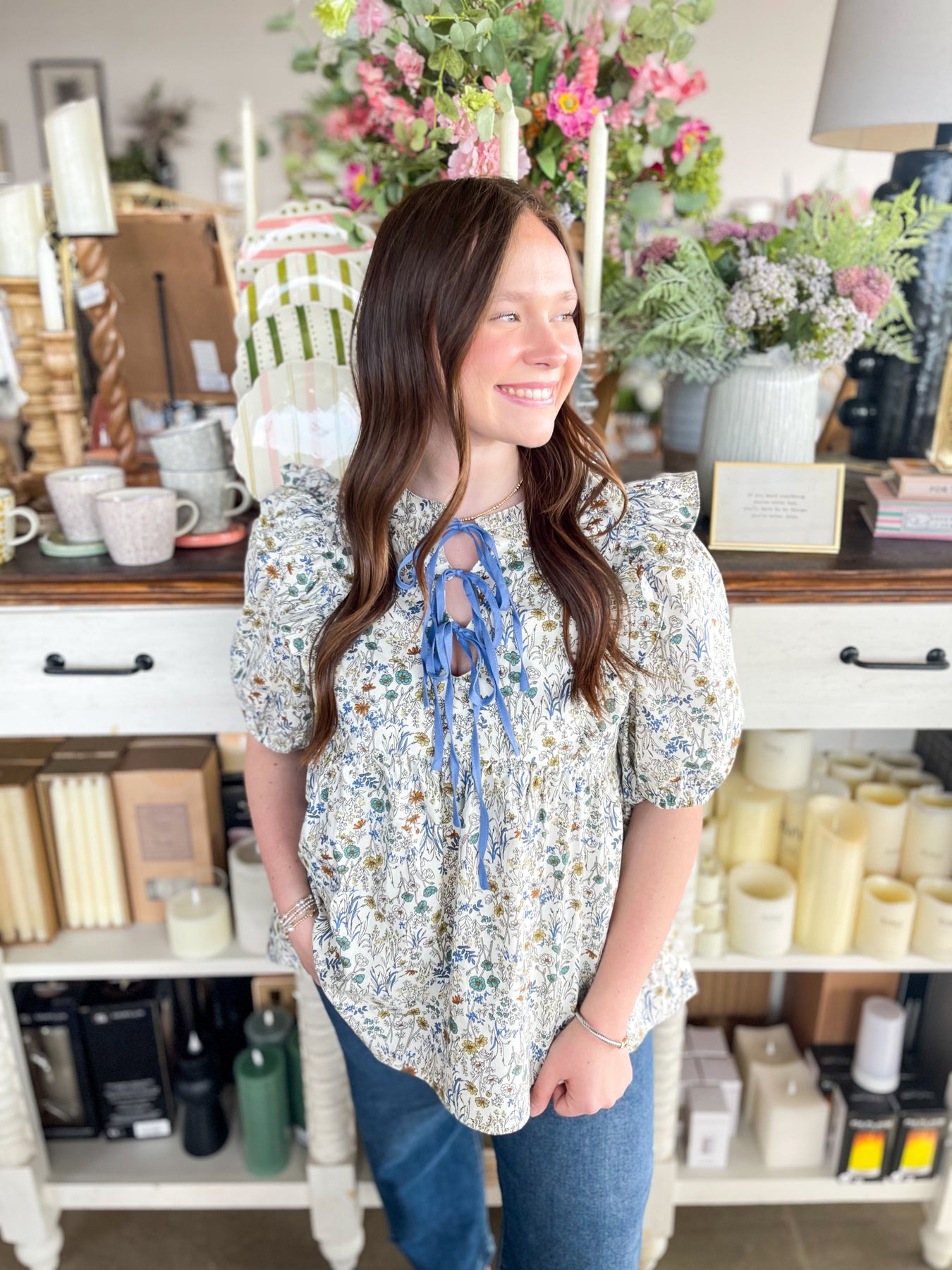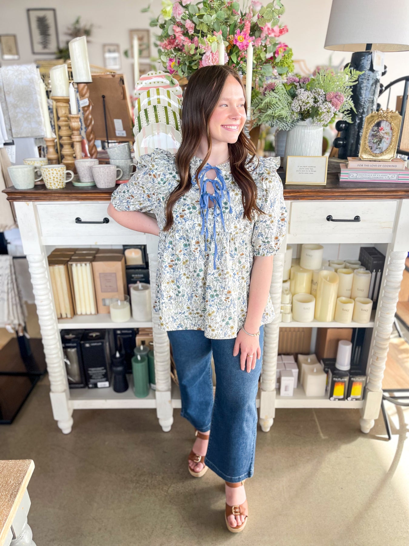 Meet your new spring obsession—the Umgee Blue Mix Abbot Top! This lightweight stunner features a dreamy cream background adorned with a vibrant multicolor floral print that's pure springtime magic. The charming tie closure at the neckline lets you customize your fit and adds an extra dash of personality. Elastic sleeves keep things comfy and on-trend, making this top perfect for everything from casual outings to weekend adventures. Effortlessly stylish and impossibly wearable, this is the piece that'll have you excited to get dressed!