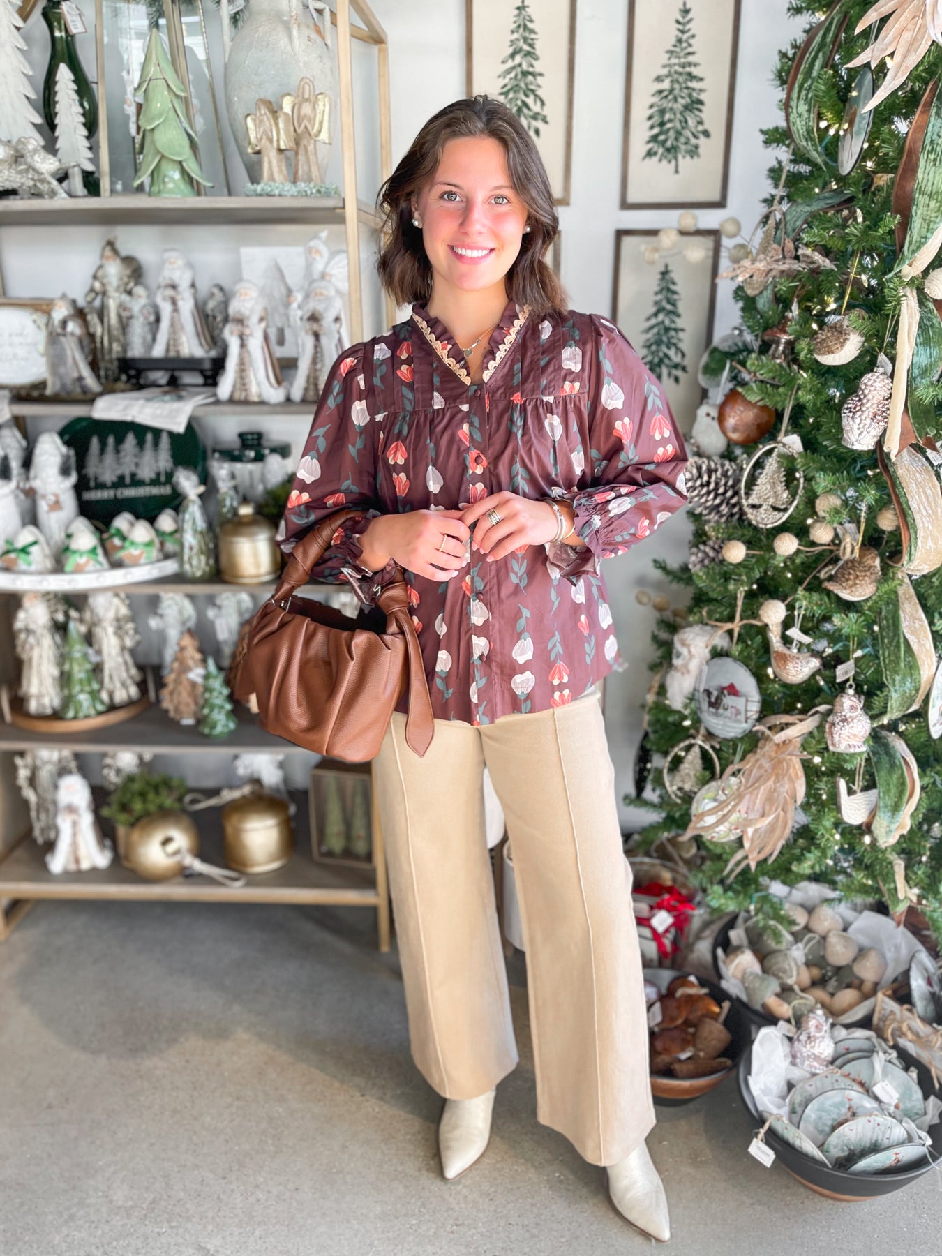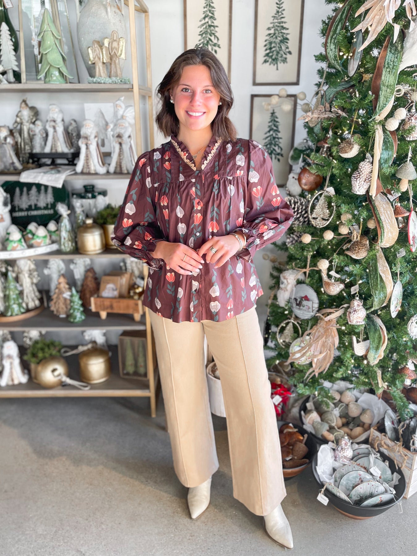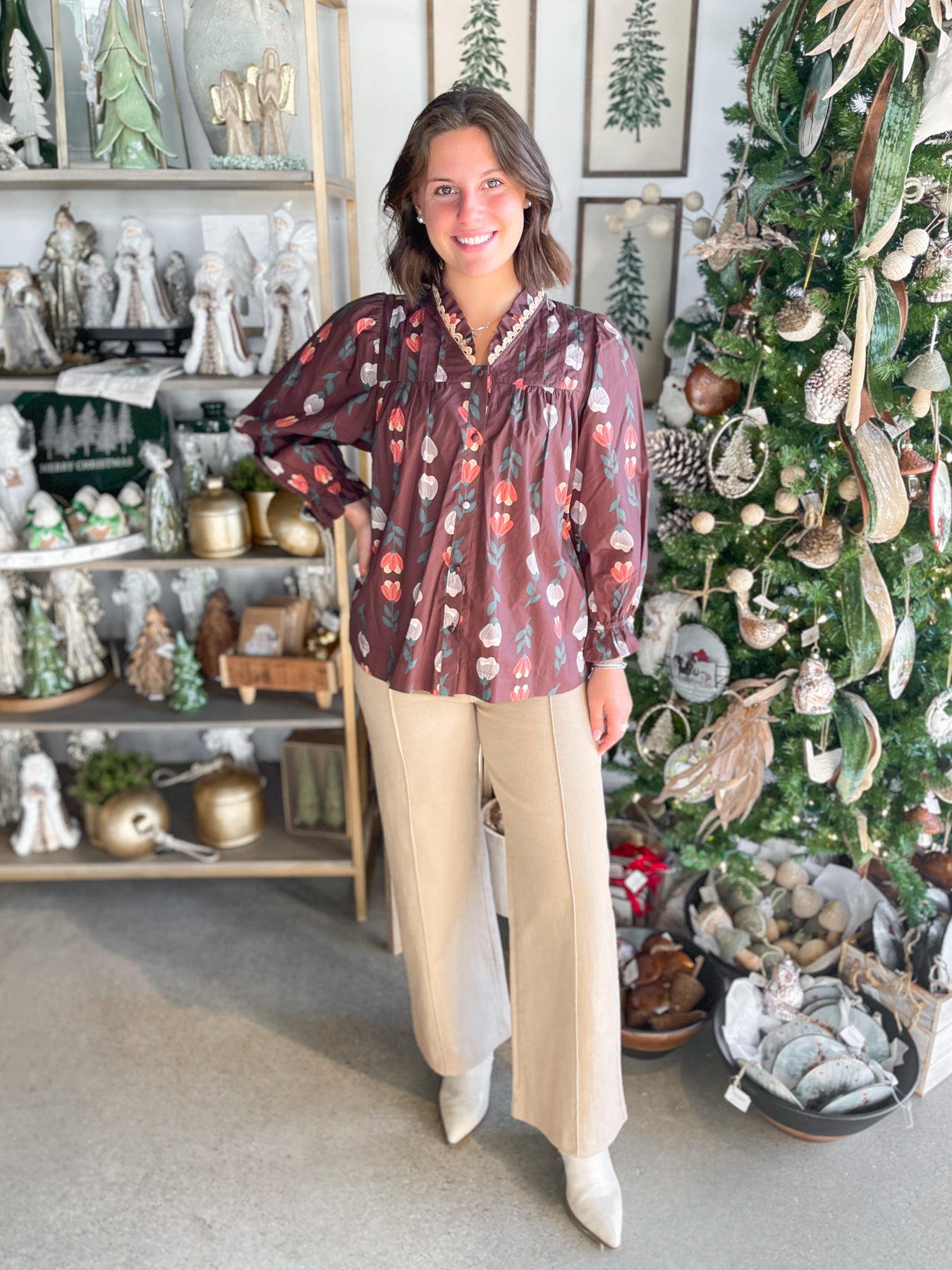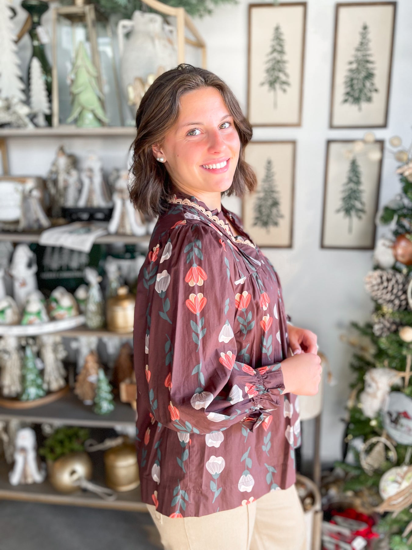The Umgee Brown Mix Phoenix Top is your fall wardrobe's new best friend with its gorgeous brown base adorned with taupe and white florals. Delicate nude ric rac trim frames the neckline for a sweet, vintage-inspired touch, while ruffled long sleeves with elastic keep things playful and on-trend. Pleated detailing across the chest adds dimension and flatters beautifully. Throw this beauty on with your favorite jeans or layer it under a cozy sweater—either way, you're serving up seasonal style that feels fresh and fun.