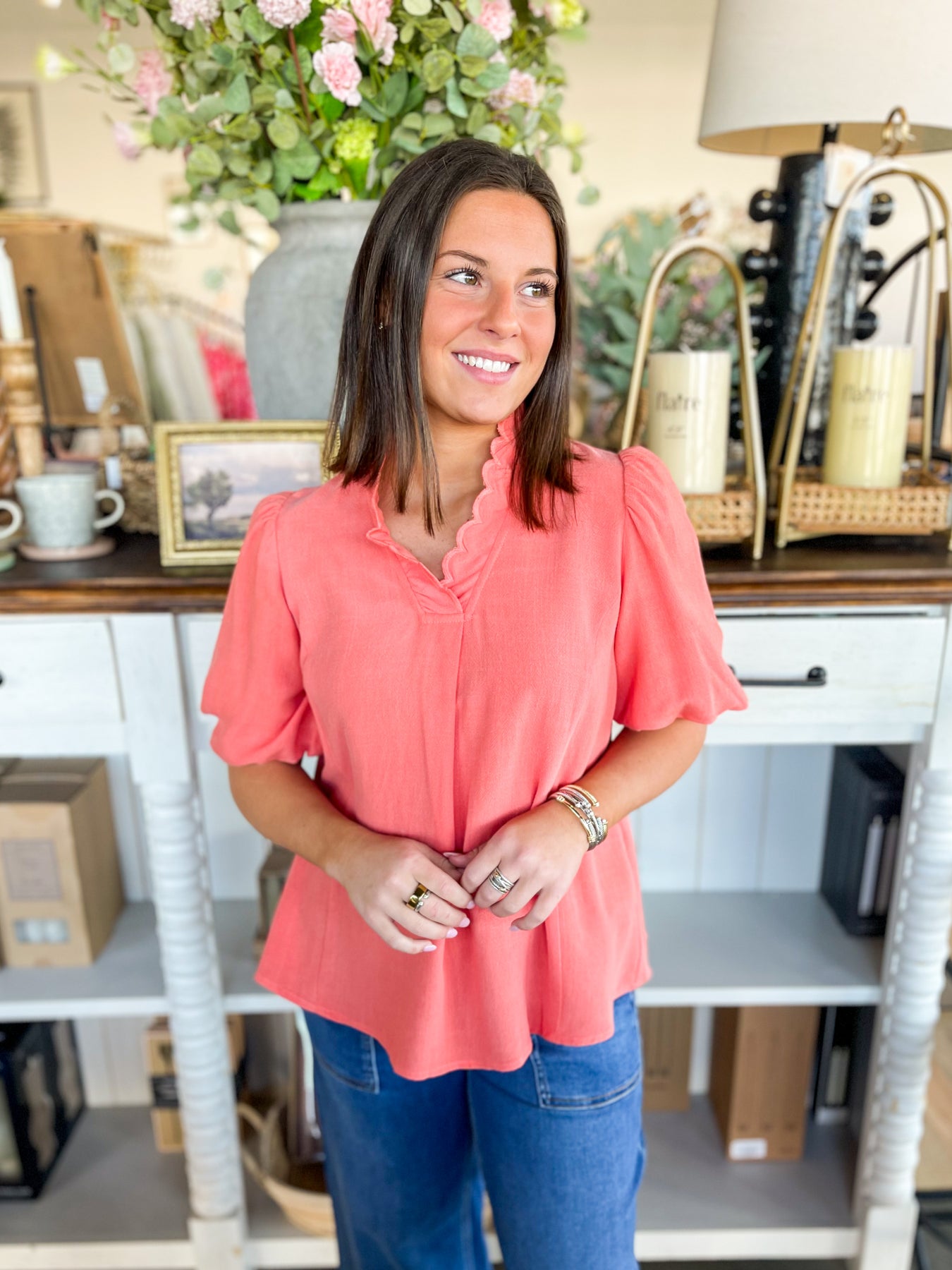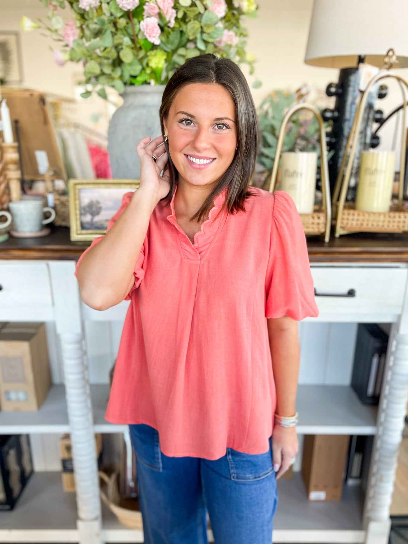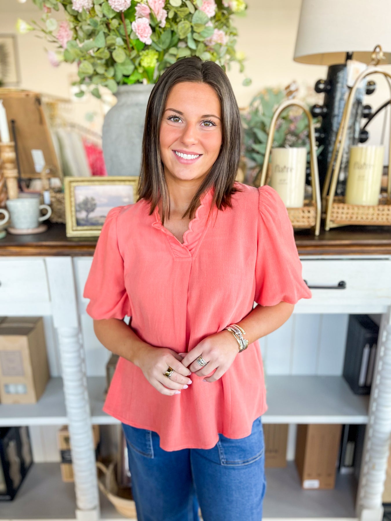Get ready to glow in this gorgeous Coral Glennis Top! Wrapped in a stunning orange hue that's impossible to ignore, this beauty features ultra-soft, flowy fabric that feels as dreamy as it looks. The delicate scallop collar and ruffled sleeves add just the right touch of trendy elegance—perfect for anyone who wants to stand out with style and comfort. Slip it on and let your vibe do the talking!