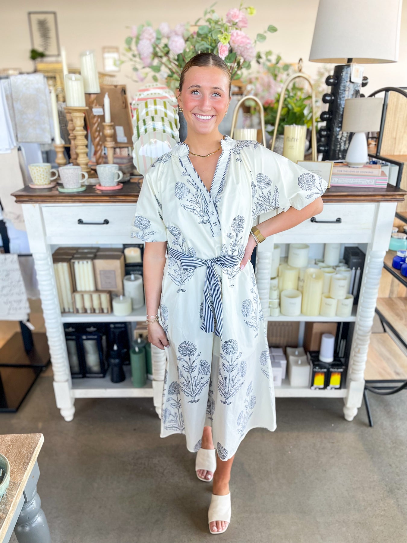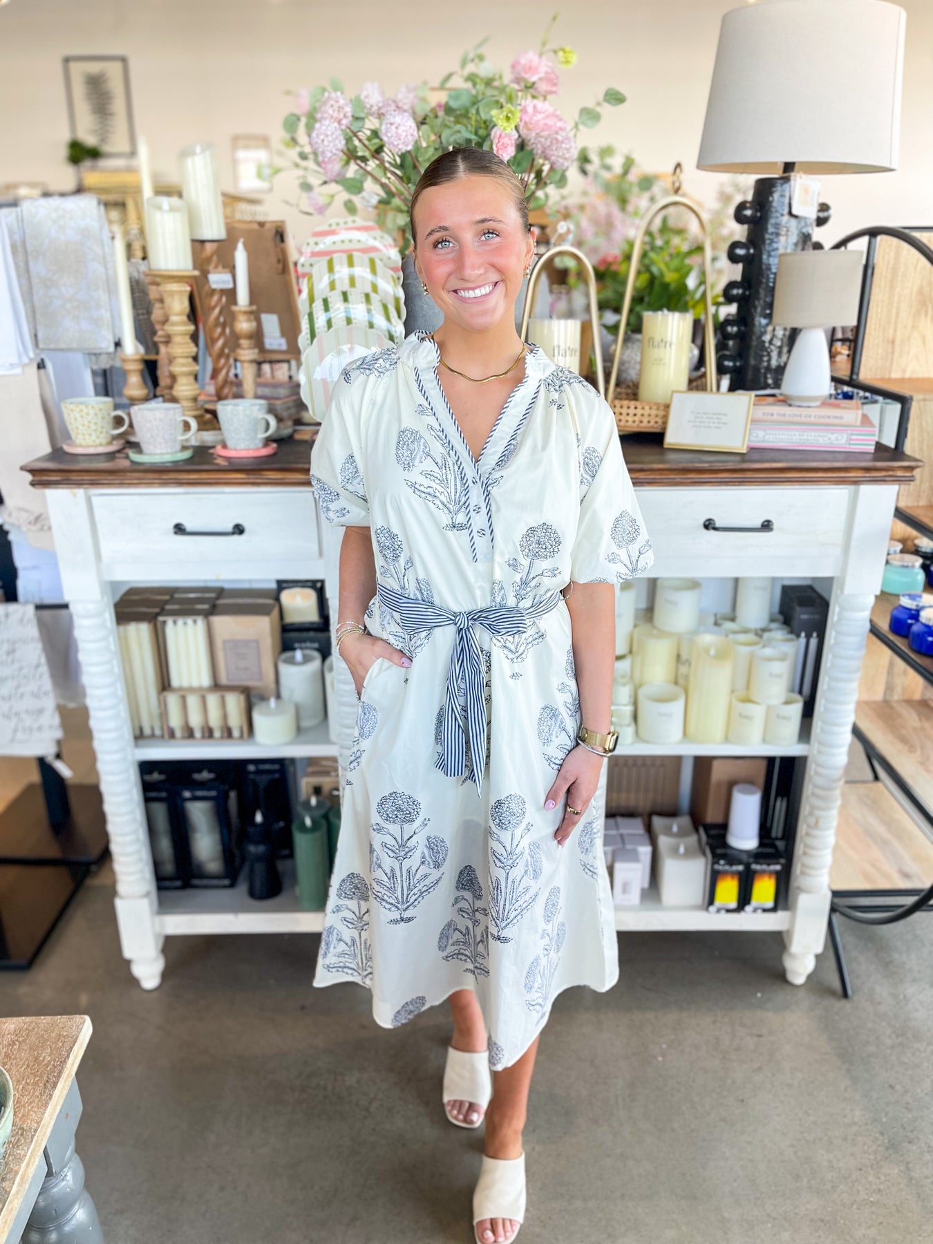 Meet your new vacation essential—the Umgee Ecru/Black Dylan Dress! This chic maxi combines timeless elegance with modern flair, featuring a stunning ivory base adorned with black and navy florals. The sophisticated collar detail frames your face beautifully, while the tie waist creates a flattering silhouette. Best part? Functional pockets keep your essentials close without sacrificing style. Trendy, versatile, and ready for anything from beachside strolls to sunset dinners, this dress is the ultimate travel companion that works as hard as you do.
