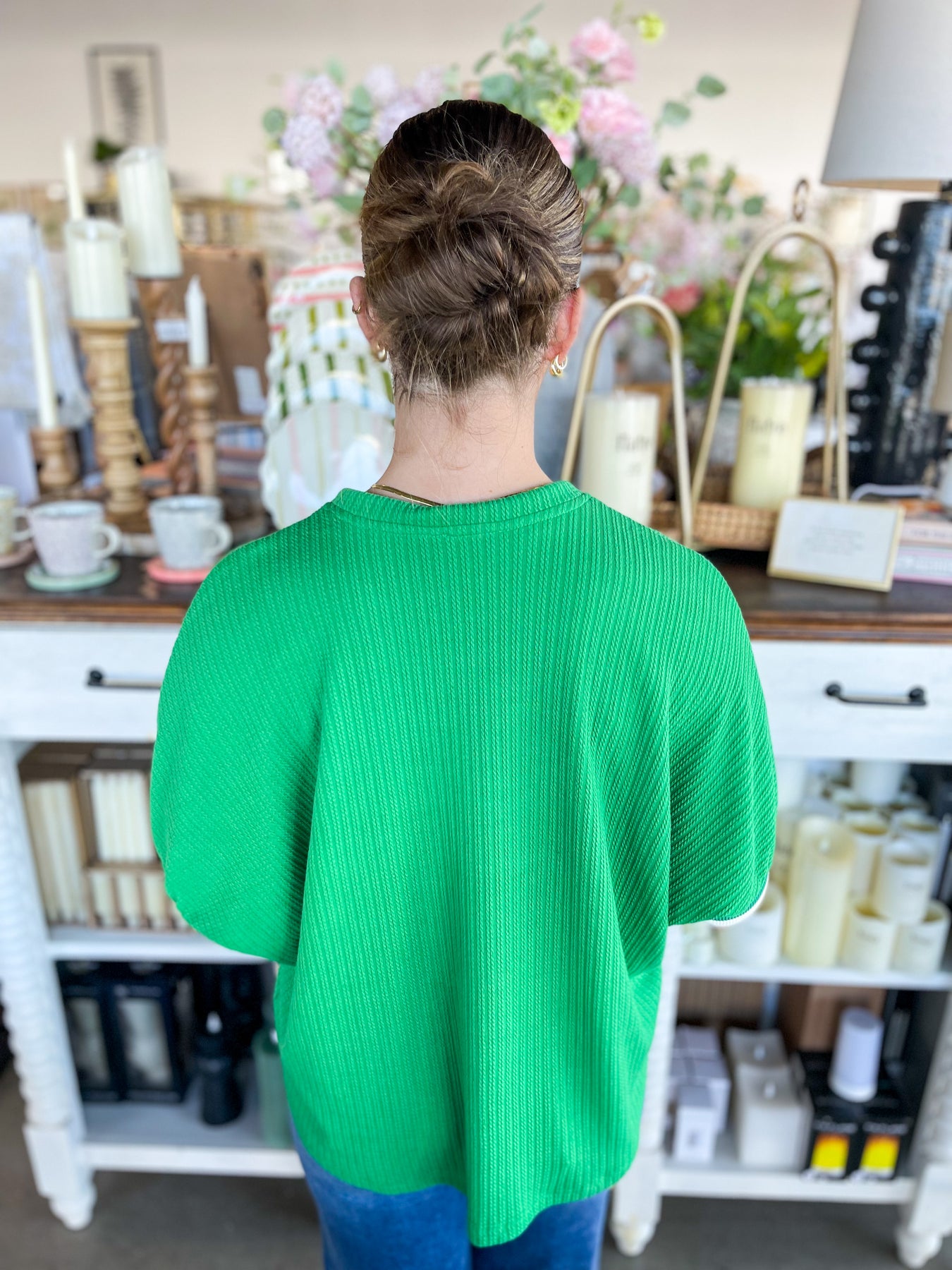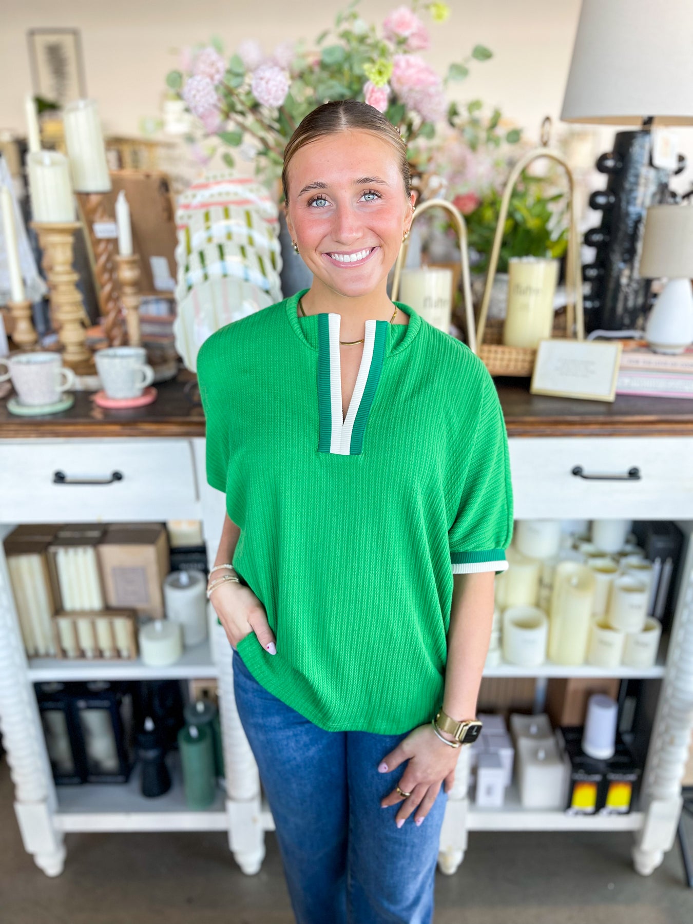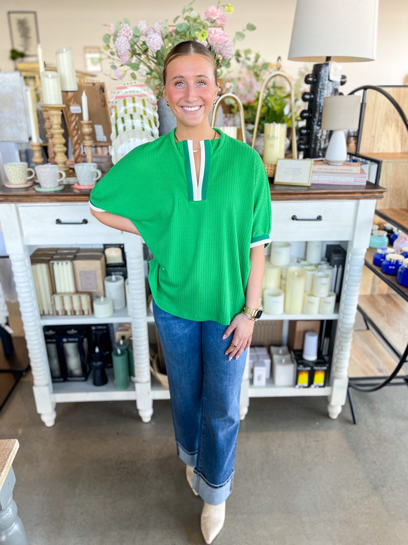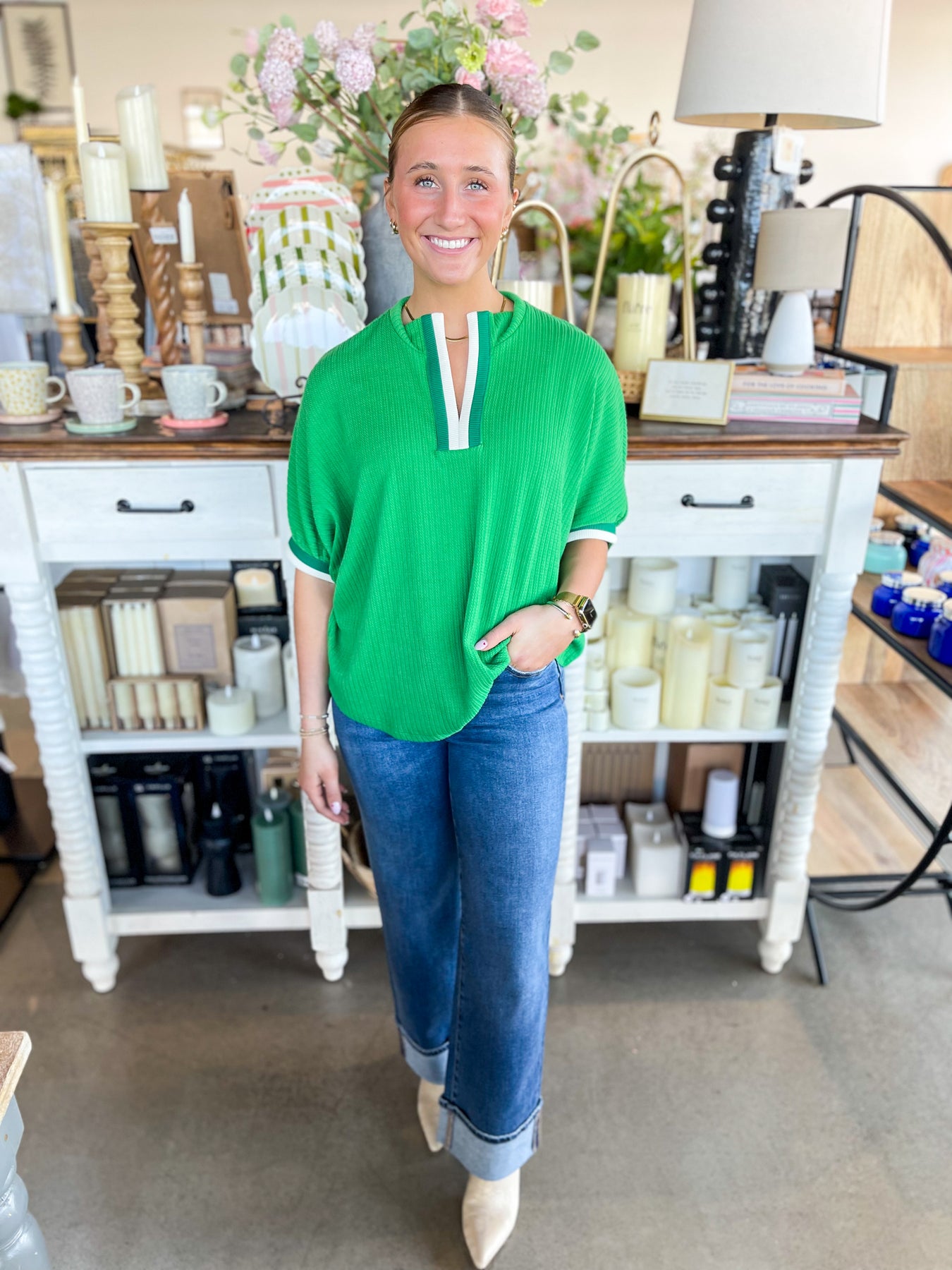 Introducing the Umgee Green Abigail Top—your new vacation and spring essential that screams effortless elegance. This stunning piece features a textured fabric that catches the light beautifully, paired with a chic varsity neckline that adds instant personality. The white and green contrast lining peeks through for a playful pop of color that elevates the whole vibe. Dressy enough for dinner dates and casual enough for daytime adventures, this top is your secret weapon for looking polished without trying too hard. Pack it, wear it, love it—this is the piece that makes every outfit feel special.