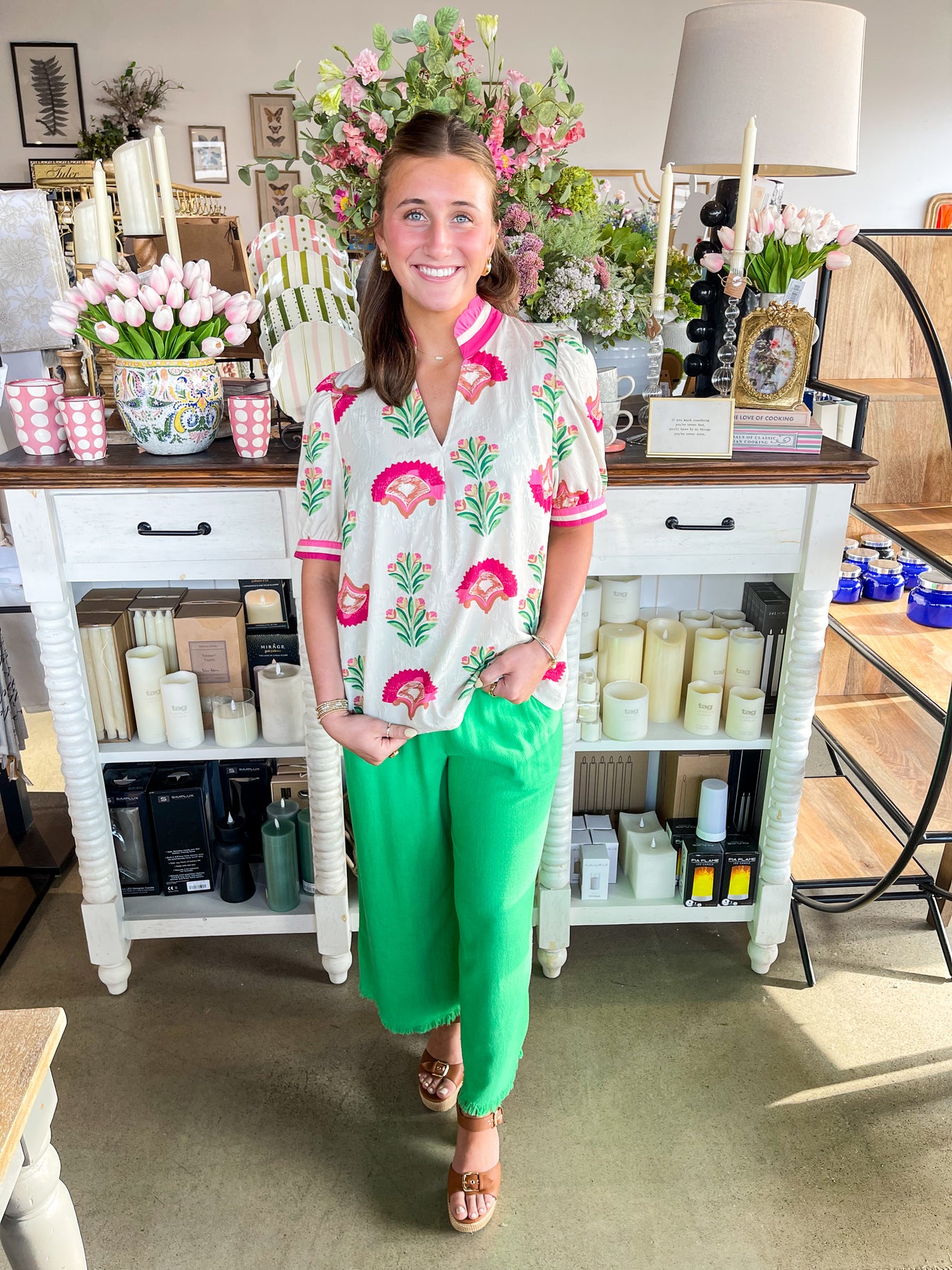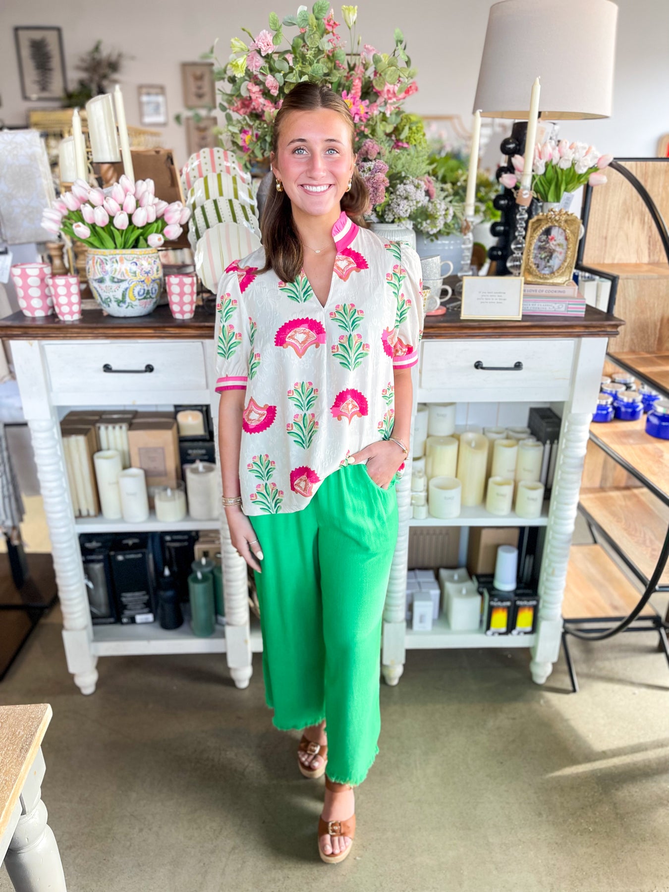 The Umgee Island Green Wide Leg Pant is a must-have for spring. With its flowy and comfortable silhouette, these fun green pants are perfect for any casual occasion. The unique color and fringe fray edges add a touch of style to this versatile piece. Expertly crafted, these pants are sure to be a staple in your wardrobe!