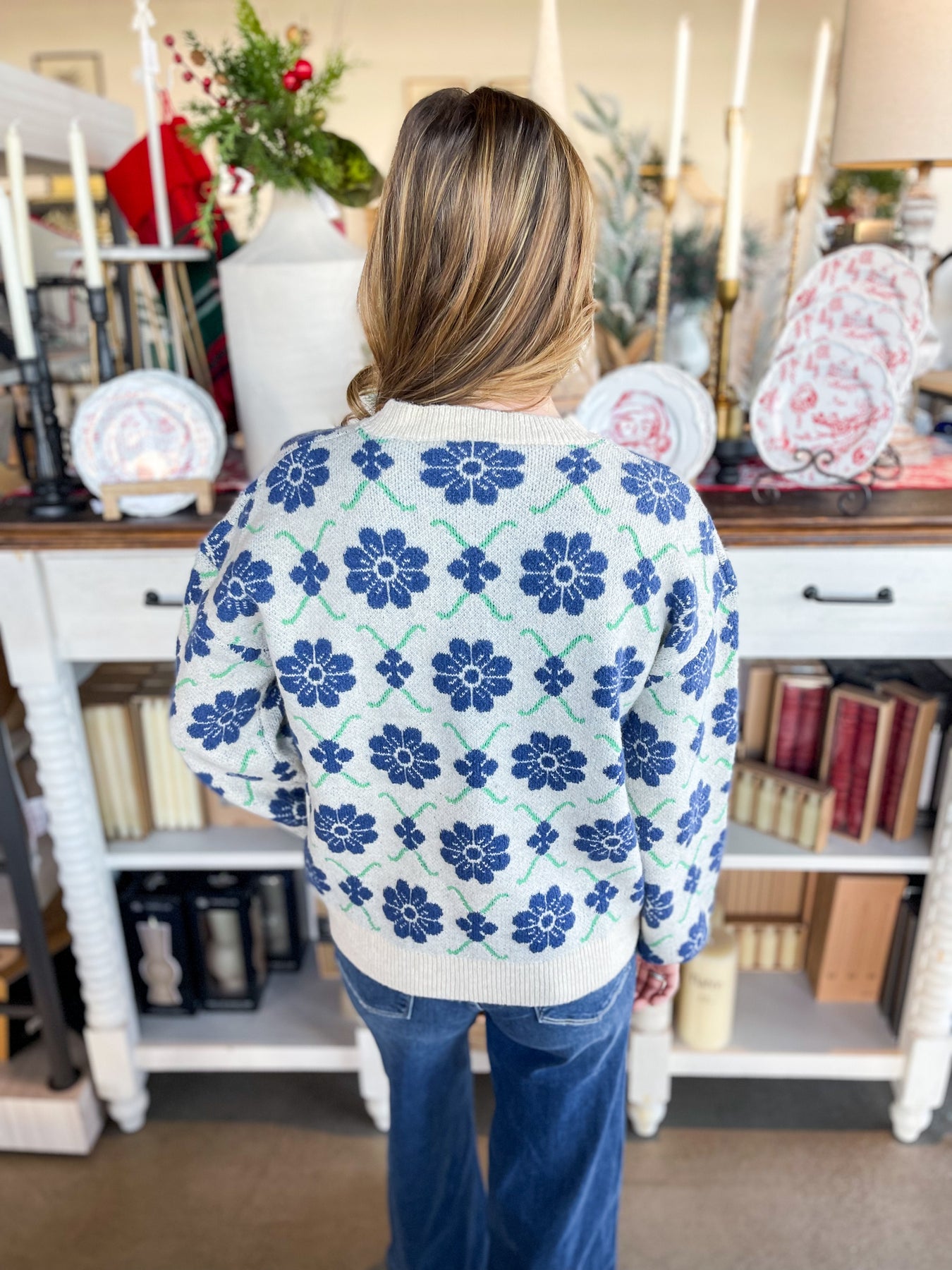 The Umgee Navy Mixer Flower Sweater is a showstopper that brings joy to your everyday style. This super soft chunky knit features a stunning floral design with vibrant pops of blue and green dancing across a crisp white base—a color combination that's both fresh and fabulous. The cozy crew neckline and long sleeves make it perfect for layering or wearing solo, while the eye-catching botanical pattern adds personality to any outfit. Comfort and charm wrapped into one irresistible sweater.