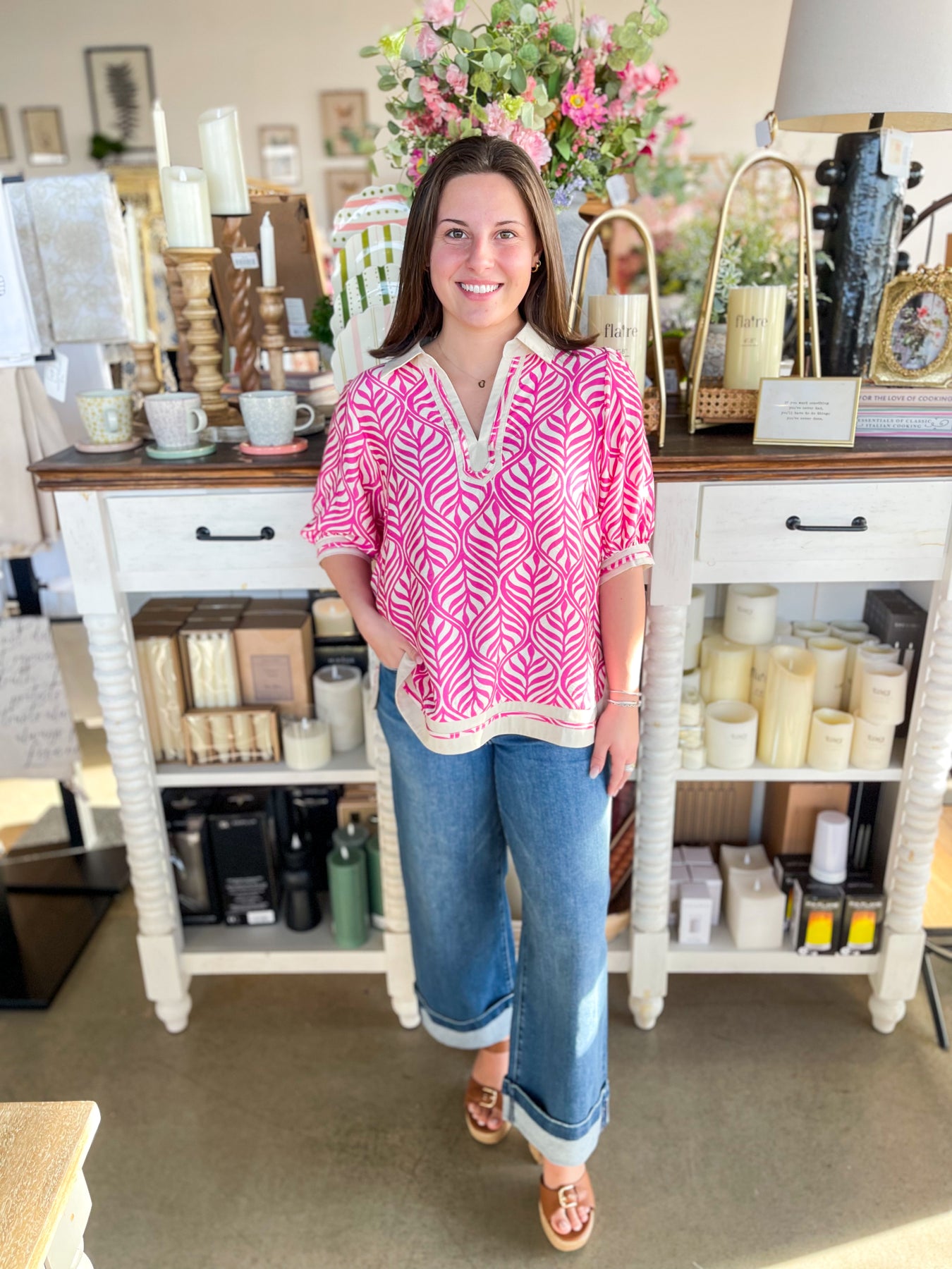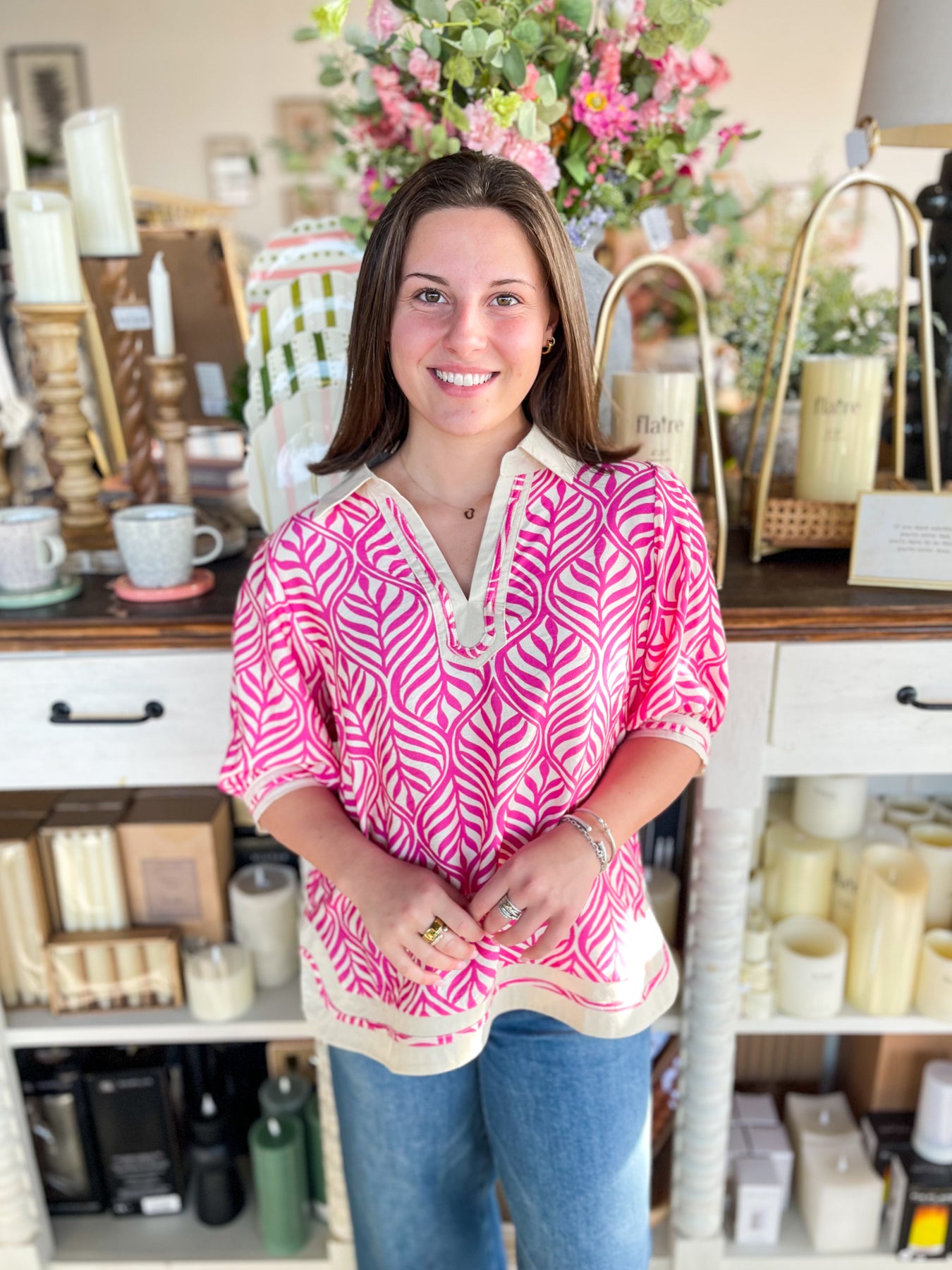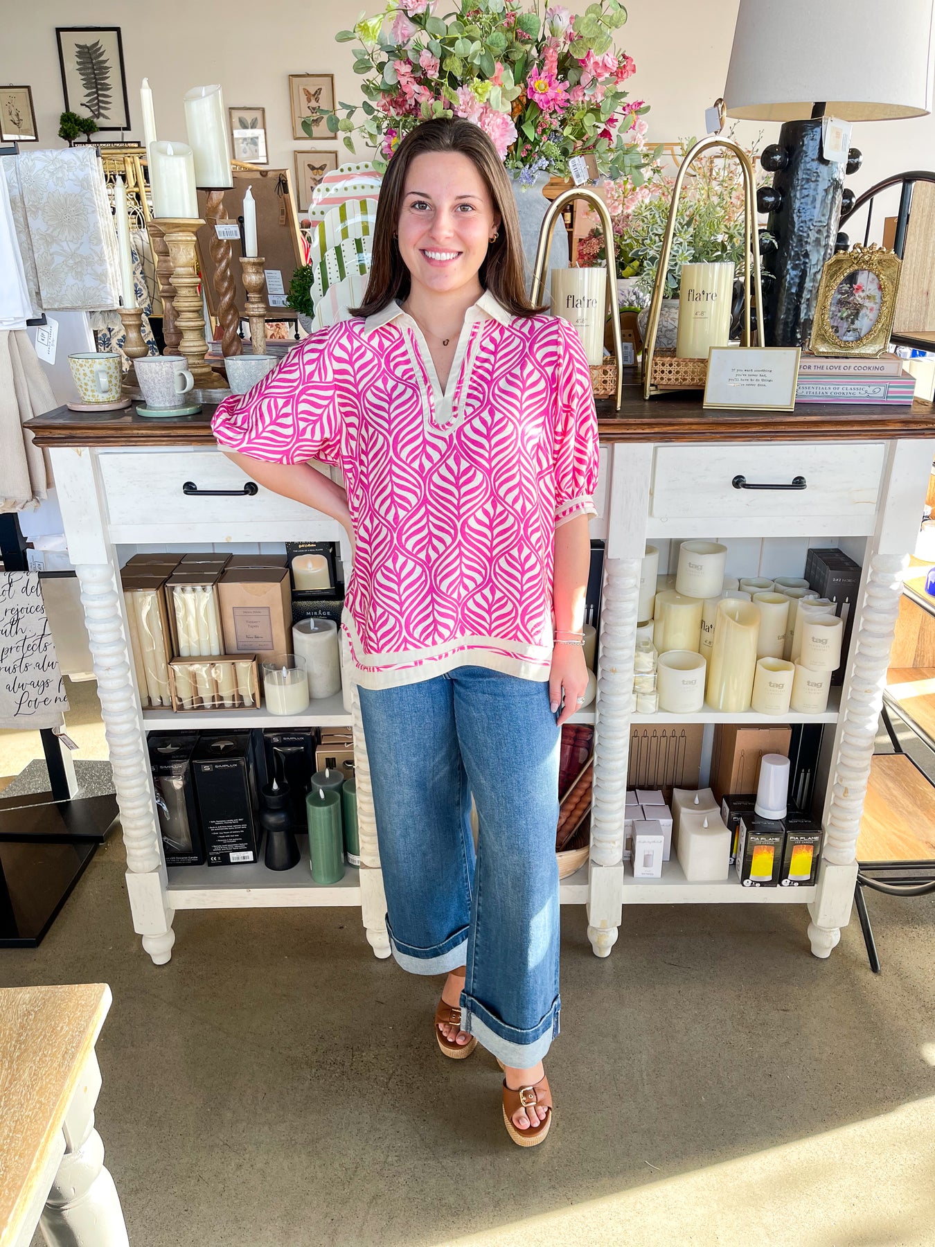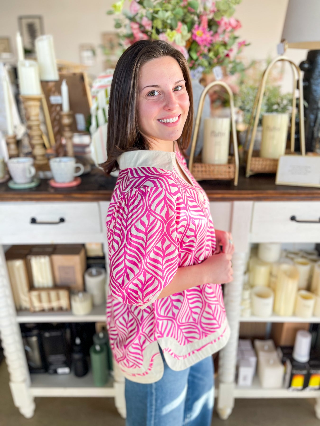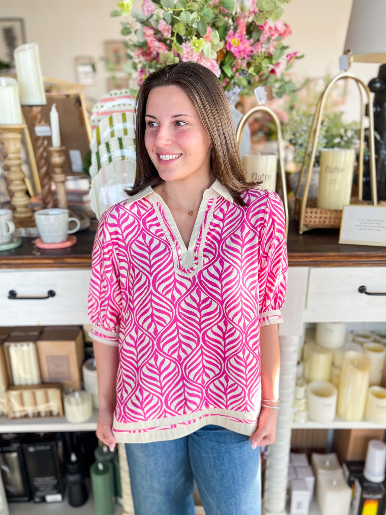 Slip into effortless vacation vibes with this Umgee Peony Reed Dress. Featuring a stunning pink and cream geometric print that catches every eye, it's designed to turn heads from resort to dinner. The flattering v-neckline and loose fit offer comfort without compromise, while the chic side slit adds just the right amount of movement and flair. That charming collar detail? Pure trendy perfection. Pack this one for your next getaway—it's the dress that does it all.