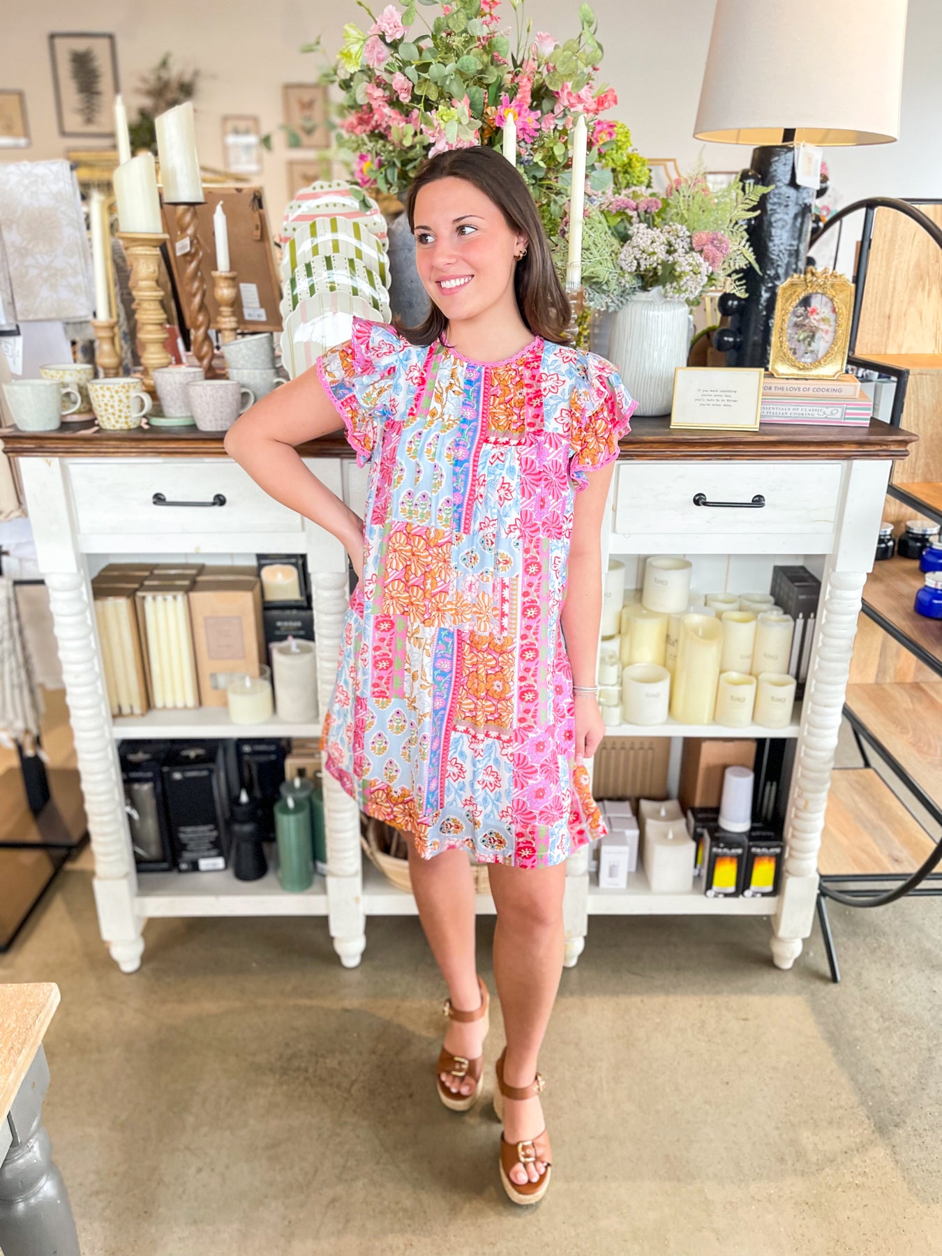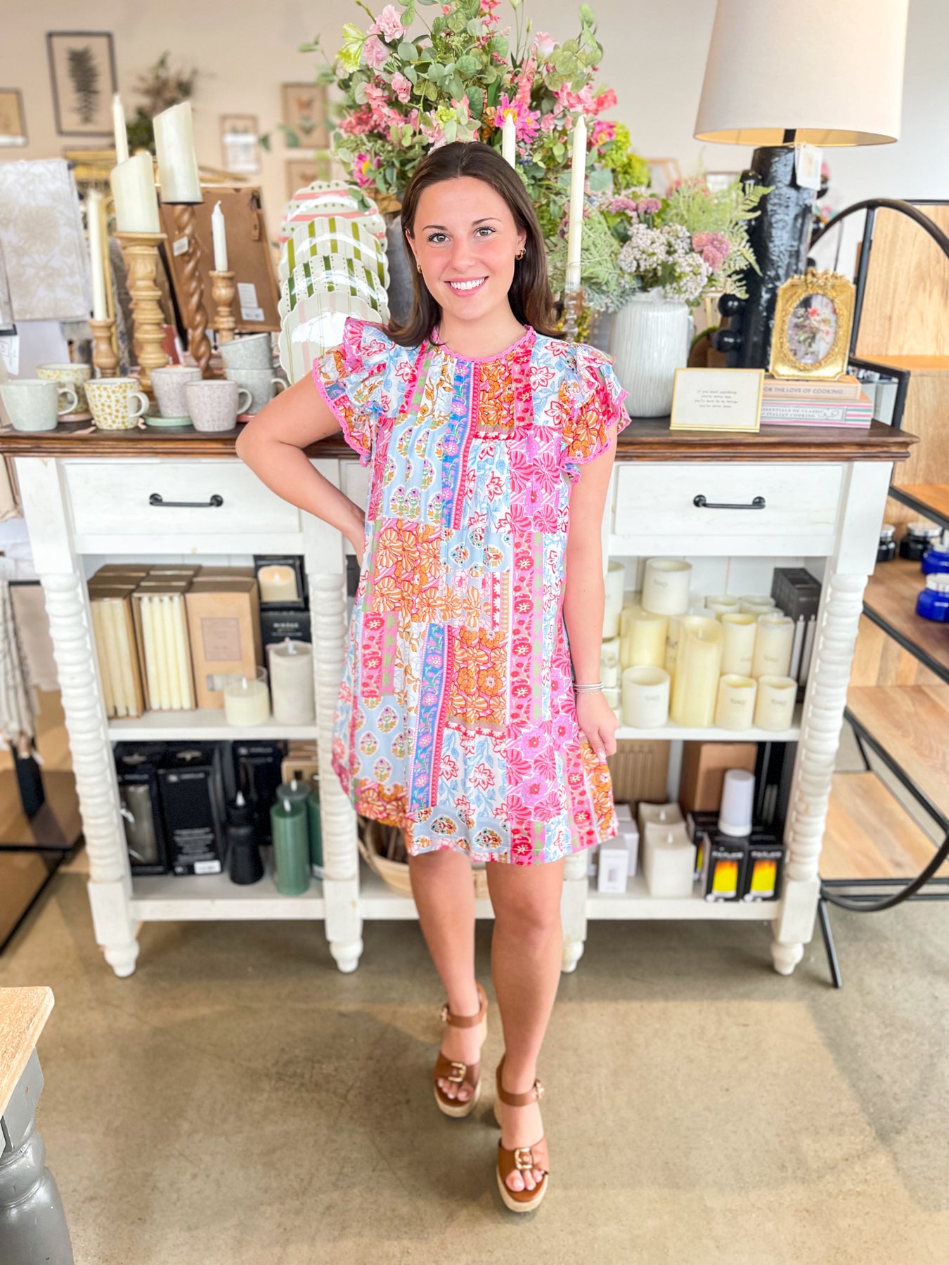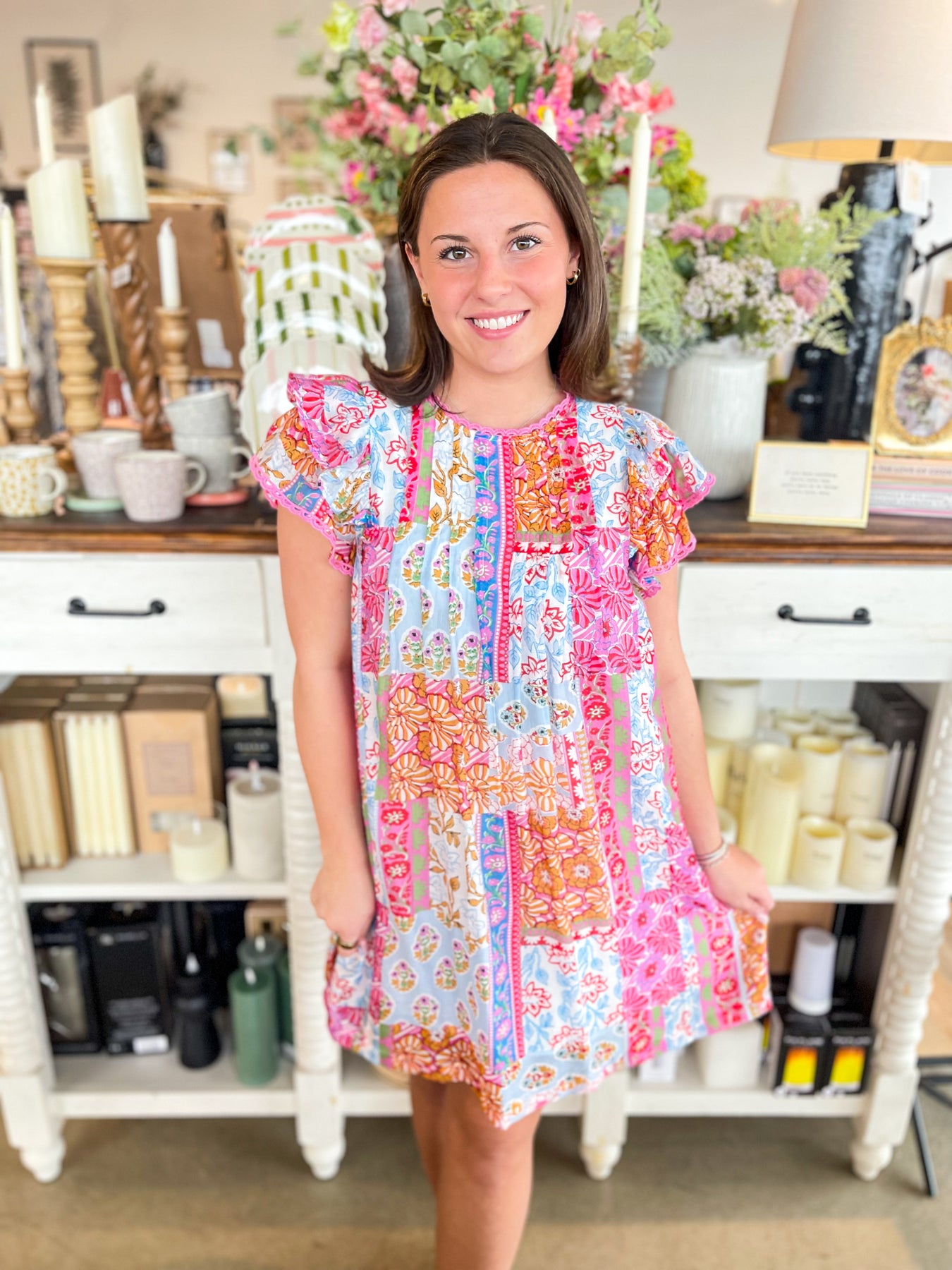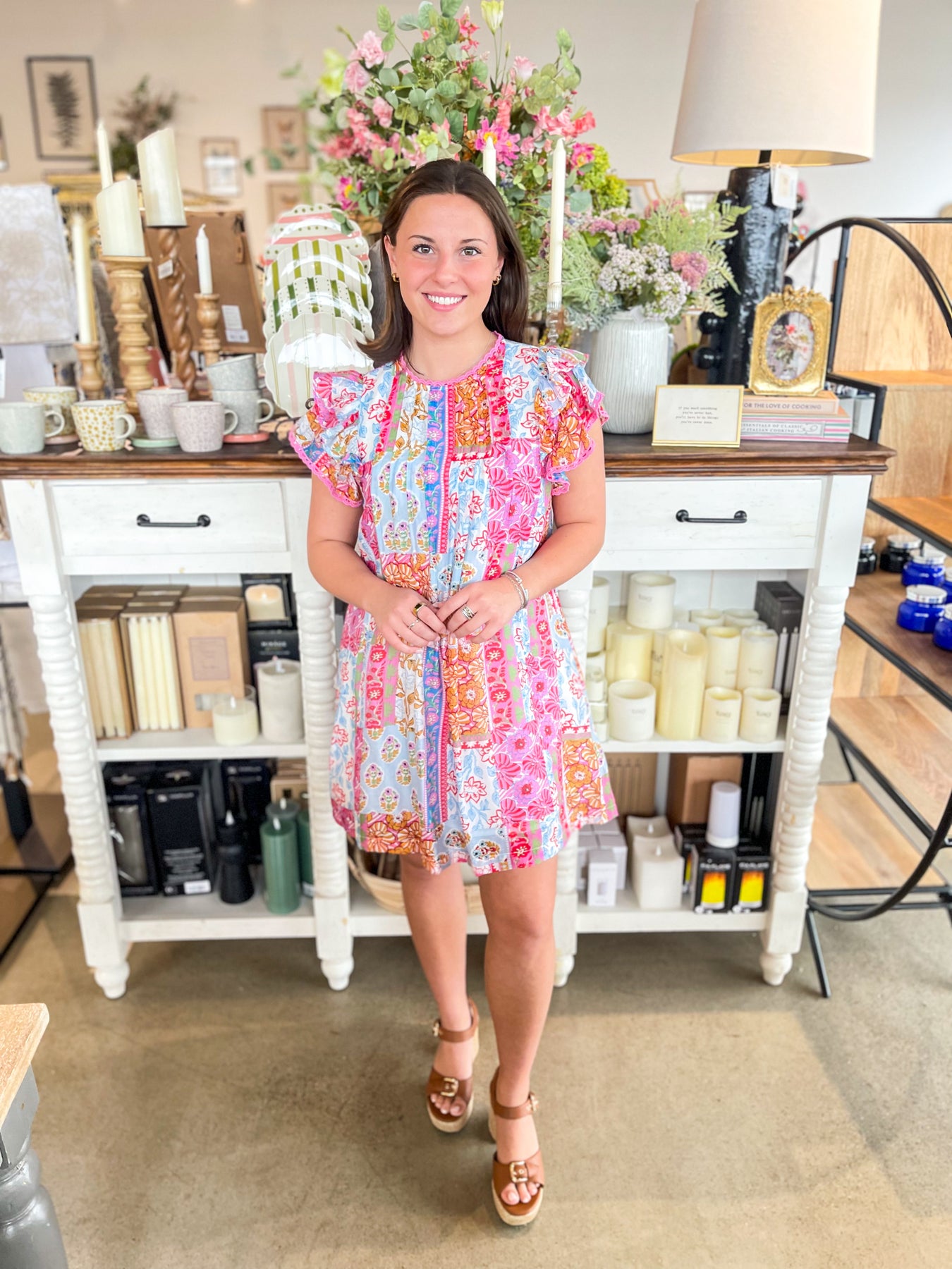 Get ready to bloom this season in this gorgeous Umgee top showcasing a stunning floral medley of pink, blue, white, and red. Short sleeves keep things breezy and cool, while delicate ruffle details add a touch of feminine charm. Lightweight and effortlessly trendy, it's the perfect spring essential for anyone who loves bold, colorful style that makes a statement.