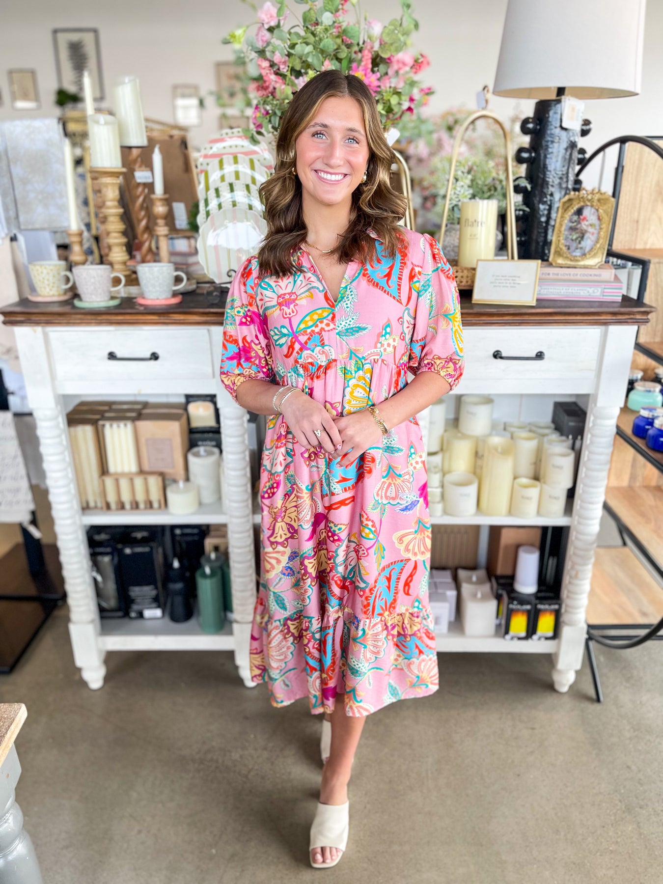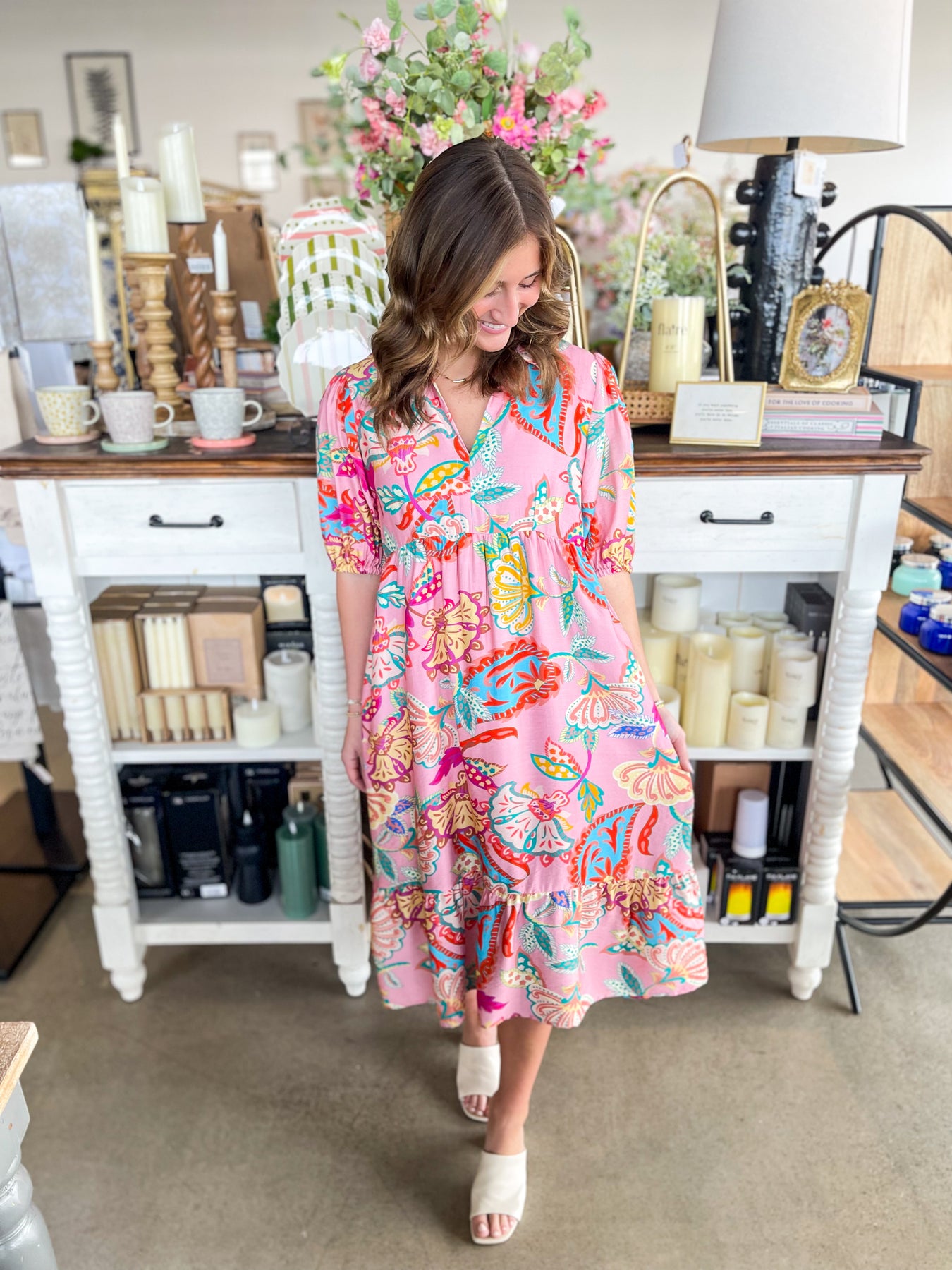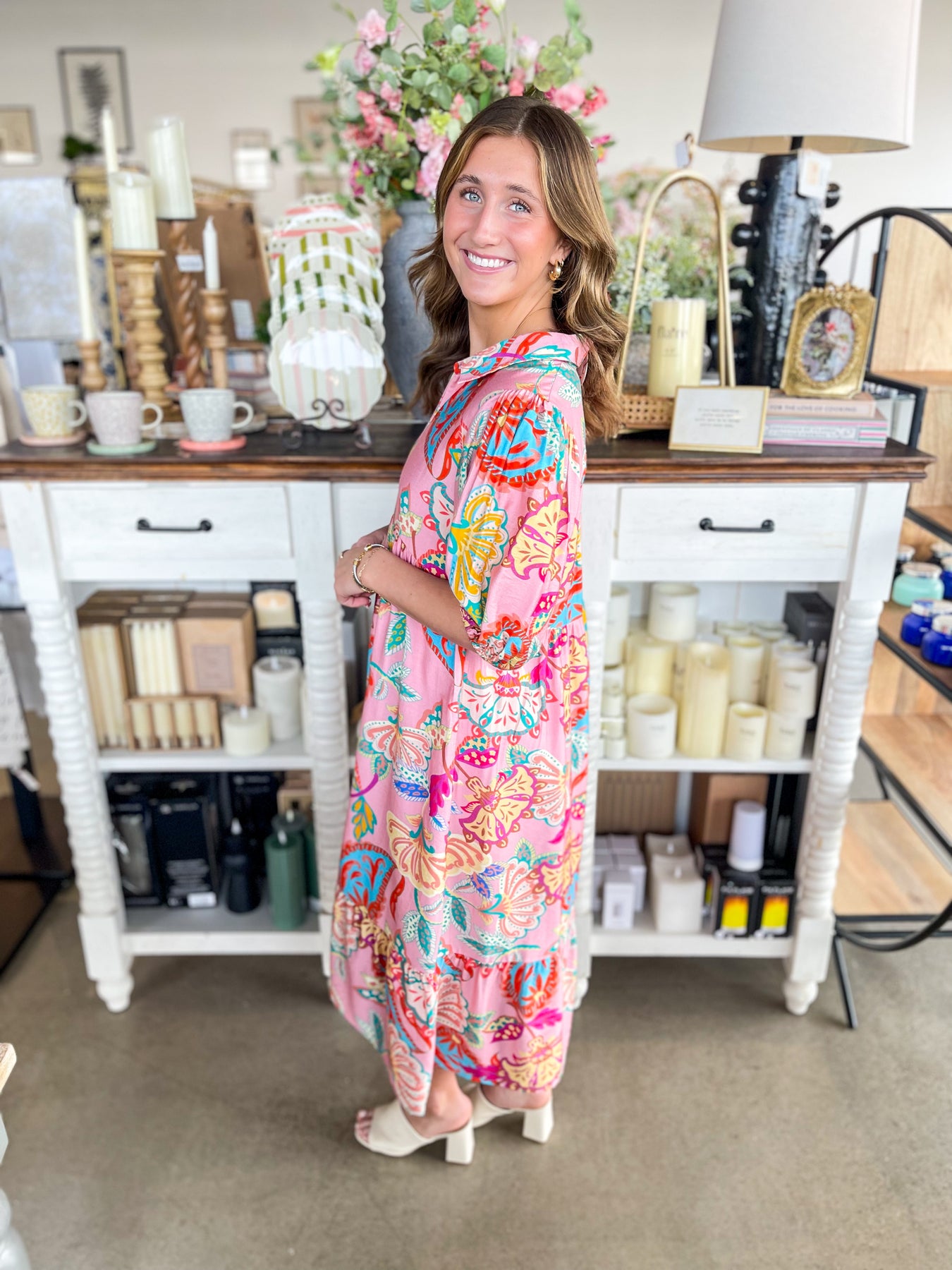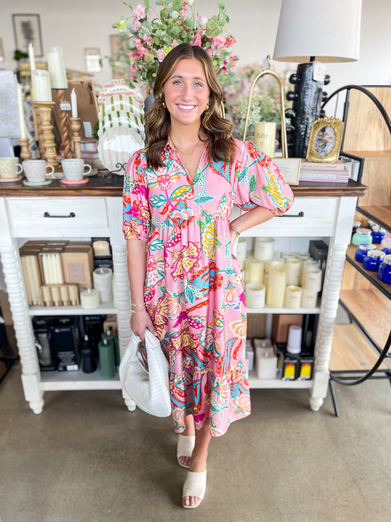 Make a statement in this absolutely stunning maxi dress! The soft pink base provides the perfect canvas for a vibrant floral print that bursts with color and life. Short sleeves keep things breezy while the elegant v-neckline flatters every frame. From tropical vacations to spring celebrations, this dress is your go-to for looking effortlessly gorgeous. Twirl, dance, and soak up the season in this playful, show-stopping piece!