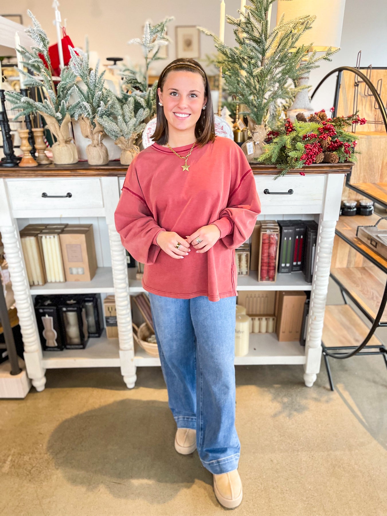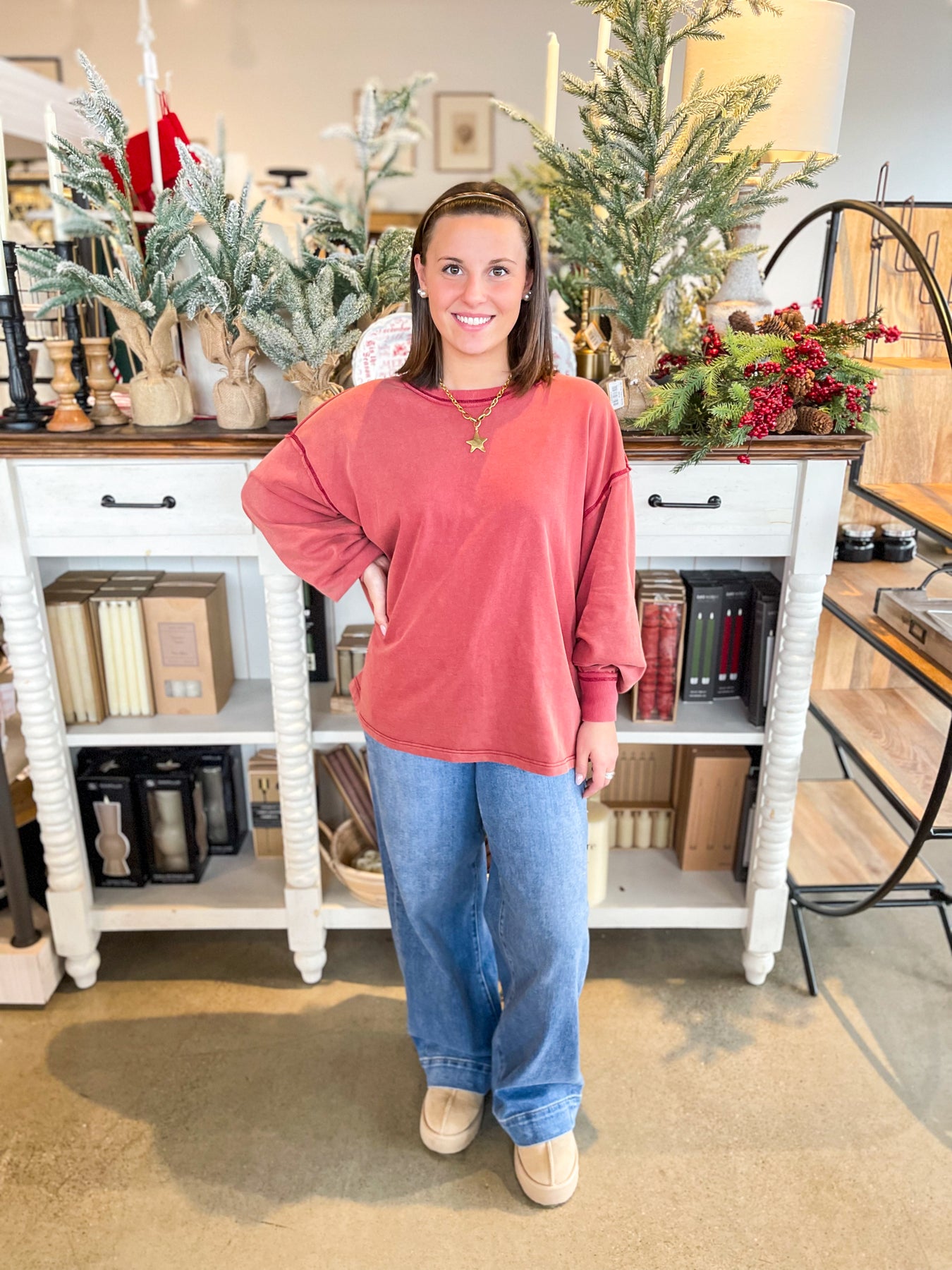 Bring the fun with the Umgee Rosewood Riley Top—a casual and cute essential that delivers serious style. This oversized beauty features a stunning pop of color in a trendy acid wash finish, while exposed seams add an edgy, modern touch. Pair it with your go-to jeans for laid-back weekday vibes or throw it on with shorts when you're ready to play. It's the kind of top that makes any outfit feel effortlessly put-together and undeniably cool.